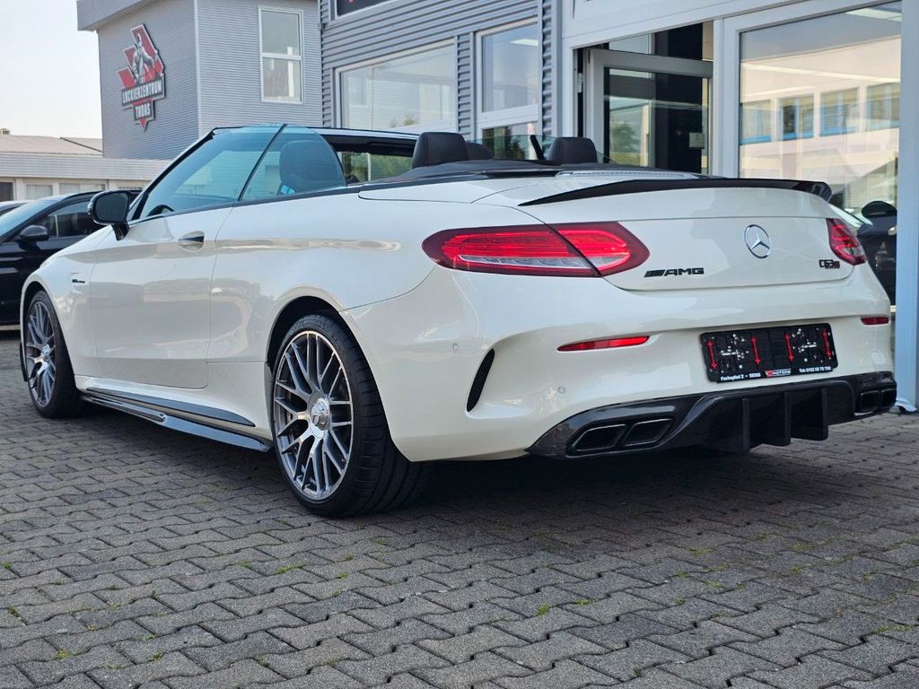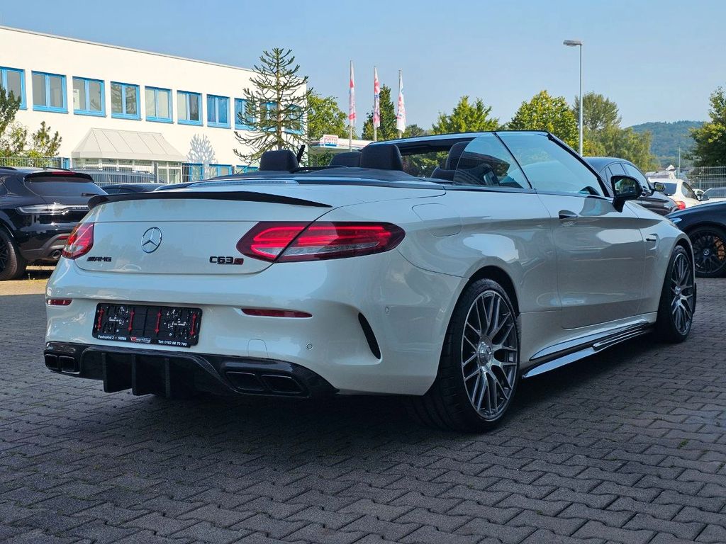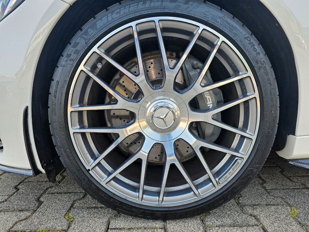 Ablage-Paket, Aircap, Akustik-Verdeck schwarz, Ambiente-Beleuchtung, Ascher anstelle Ablagefach, Audiosystem Audio 20 (mit Farbdisplay), Außenspiegel mit Totwinkel-Assistent, Heckdeckelverriegelung separat, Innenausstattung: Edelholz Esche, schwarz, Kopfraumheizung (Airscarf), LM-Felgen vorn/hinten: 9x19 / 10,5x19 (AMG, Kreuzspeichen, geschmiedet), PRE-SAFE-System, Reifen-Reparaturset (Tirefit), Rückfahrkamera, Sitz vorn links elektr. verstellbar (mit Memory), Sitz vorn rechts elektr. verstellbar (mit Memory), Sitzbezug / Polsterung: Leder Nappa, 2-farbig, Sitzheizung vorn, Sonderlackierung Diamant-Weiß Bright (designo-Lack), Spiegel-Paket, Sport-Auspuffanlage (AMG Performance), Surround-System Burmester, Touchpad mit Drehknopf (Mittelkonsole), Vorbereitung Navigationssystem (Garmin MAP Pilot), Vorrüstung Mobiltelefon/Handy / Komfort-Telefonie / LTE-fähig, Zeituhr (Analog)
