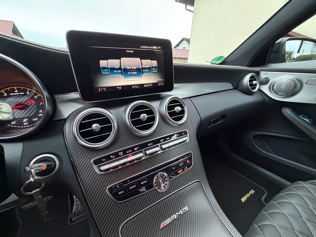 Ablage-Paket, Ambiente-Beleuchtung, AMG Driver's Package, Armaturentafel Oberteil in Nappaoptik, Audio-Navigationssystem: COMAND Online, Außenspiegel mit Totwinkel-Assistent, Fahrassistenz-System: Fernlichtassistent Adaptive plus, Fahrassistenz-System: Verkehrszeichenerkennung, Feuerlöscher, Gurtbringer, Intelligent Light System LED, Keramik-Bremsanlage (AMG), LM-Felgen vorn/hinten: 9x19 / 10,5x20 (AMG Performance, 5-Doppelspeichen, geschmiedet, mattschwarz), Media Interface (Universal-Schnittstelle für iPod / AUX / USB / MP3), Night-Paket (AMG), Park-Paket, PRE-SAFE-System, Scheibenwaschanlage beheizt, Sitz vorn links elektr. verstellbar (mit Memory), Sitz vorn rechts elektr. verstellbar (mit Memory), Sitzbezug / Polsterung: Leder Nappa, Sitzheizung vorn, Sonderlackierung Diamant-Weiß Bright (designo-Lack), Spiegel-Paket, Sport-Auspuffanlage (AMG Performance), Sportsitze AMG Performance, Surround-System Burmester, Vorrüstung Mobiltelefon/Handy / Komfort-Telefonie / LTE-fähig