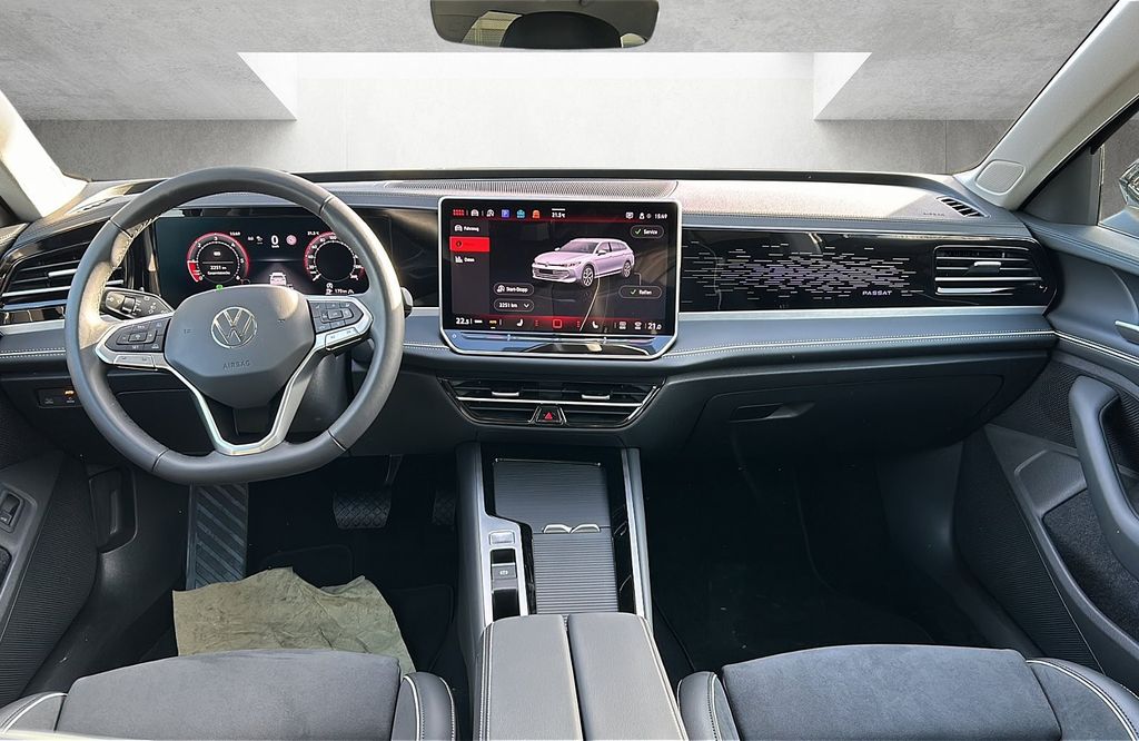 Ambiente-Beleuchtung, Außenspiegel elektr. verstell-, heiz- und anklappbar, Umfeldleuchte, Abblendautomatik links, Spiegelabsenkung rechts, Digital Cockpit PRO (Instrumentenanzeige Digital), Fahrassistenz-System: Autom. Distanzregelung (ACC inkl. Stop&Go-Funktion), Fahrassistenz-System: Memoryfunktion für Park Assist, Fahrassistenz-System: Parklenkassistent (Park Assist Plus) inkl. Einparkhilfe vorn und hinten, Head-up-Display, Infotainment-System mit Touchscreen-Farbdisplay 12,9 Zoll, Innenspiegel mit Abblendautomatik, Isofix-Aufnahmen für Kindersitz an Beifahrersitz und Rücksitze außen (inkl. i-Size-Kindersitze), Klimaanlage Air Care Climatronic 3-Zonen inkl. Fondbedienung und Aktiv-Kombi-Filter, Lenkrad heizbar (Leder) mit Multifunktion und Schaltfunktion, Mobile Online Dienste App-Connect Wireless (Apple CarPlay, Android Auto), Mobiltelefon Schnittstelle Comfort mit kabelloser Ladefunktion (15 Watt), Multimedia-Schnittstelle 2 x USB (Typ C) vorn und 2 x USB-Ladeanschluß (Typ C) Mittelkonsole hinten (45 W), Navigationsfunktion, Progressivlenkung, Radioempfang digital (DAB+), Rückfahrkamera (Rear View), Rücksitz geteilt / klappbar, Durchladefunktion, Scheibenwischer mit Regensensor, Seitenscheiben hinten und Heckscheibe abgedunkelt, Sitze vorn mit Massageprogrammen, Sprachassistent IDA und elektronische Sprachverstärkung, Start/Stop-Anlage mit Rekuperation