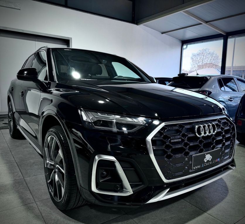 Audi Q5 12V Mhev 40 2.0 TDI 204cv Quattro S-Tronic,allestimento S-Line Plus,dotata di cambio automatico,sequenziale e al volante,Start&Stop,colorazione Audi Individual Ultra Black,cerchi 21" bicolore,pinze freni rosse,vetri posteriori oscurati,telecamera di manovra,pack keyless,park assist parcheggiatore automatico,Pack full led Exterior,fari Full Led,battitacco logo led S-Line,Virtual Cockpit 10",realta' aumentata,sistema di navigazione,autoradio mp3 con display 12",connectivity pack Carplay ioS e Android,aux,usb,bluetooth voce e dati,stazione di ricarica wireless,hotspot wi-fi,attivazione vocale,impianto Audio,ambient light a colorazione variabile,interni in pelle e stoffa S-Line,seduta estendibile e supporto lombare,poggiabraccio,clima automatico tri-zona,volante multifunzione,adaptive cruise control,retrovisori regolabili e richiudibili elettricamente,portellone elettrico,sensori di parcheggio,sensori luci e pioggia,abs,esp,tutti i sensori e i sistemi di assistenza e sicurezza alla guida.