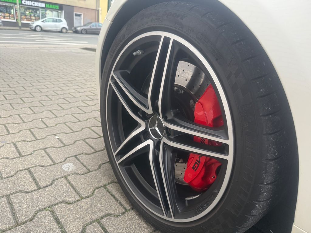 Adaptives Bremslicht, Airbag Beifahrerseite abschaltbar, Airbag Fahrer-/Beifahrerseite, Antriebs-Schlupfregelung (ASR), Audiosystem Audio 20 (mit Farbdisplay), Beckenairbag vorn (Pelvisbag), Blinkleuchte in Außenspiegel integriert, Blinkleuchte LED mit Lauflicht, Bremssättel lackiert, Design- und Ausstattungslinie Standard, Digitales Instrumenten-Display, Einschaltautomatik für Fahrlicht, Einstiegsleisten (AMG), Fahrassistenz-System: aktiver Bremsassistent, Fahrassistenz-System: Attention-Assist (Müdigkeitserkennungs-Sensor), Fahrassistenz-System: Auffahrwarnsystem mit Bremsfunktion (Collision Prevention Assist), Fahrassistenz-System: Berganfahrhilfe, Feststellbremse elektrisch, Fußmatten AMG, Gepäckraumabdeckung / Rollo, Getränkehalter vorn (doppelt), Heckflügelspoiler, Heckleuchten LED, Heckscheibe heizbar (ESG), Infotainment-System: Mercedes me connect, Infotainment-System: Remote Online, Innenhimmel schwarz, Interieur-Paket Chrom, Interieur-Paket: Silver Chrome (AMG), Karosserie: 3-türig, Keyless Go Startanlage, Kindersitzerkennung im Beifahrersitz (automatisch), Knieairbag Beifahrerseite, Knieairbag Fahrerseite, Komfort-Klimaautomatik (Thermotronik), Kommunikationsmodul (LTE) Vorbereitung Mercedes me connect, Kopf-Airbag-System (Windowbag), Lenkrad - AMG Lenkradtasten, Mercedes-Benz Notrufsystem, Motor 4,0 Ltr. - 340 kW V8 KAT, Reifendruck-Kontrollsystem, Reiserechner, Schadstoffarm nach Abgasnorm Euro 6, Seitenairbag (Sidebag) vorn, Sitzbezug / Polsterung: Stoff / Ledernachbildung Artico, Sonnenblenden mit Spiegel (beleuchtet), Sperrdifferential (AMG), Sport-Auspuffanlage, Sport-Fahrwerk (AMG), Start/Stop-Anlage, Steckdose (12V-Anschluß), Wärmeschutzverglasung