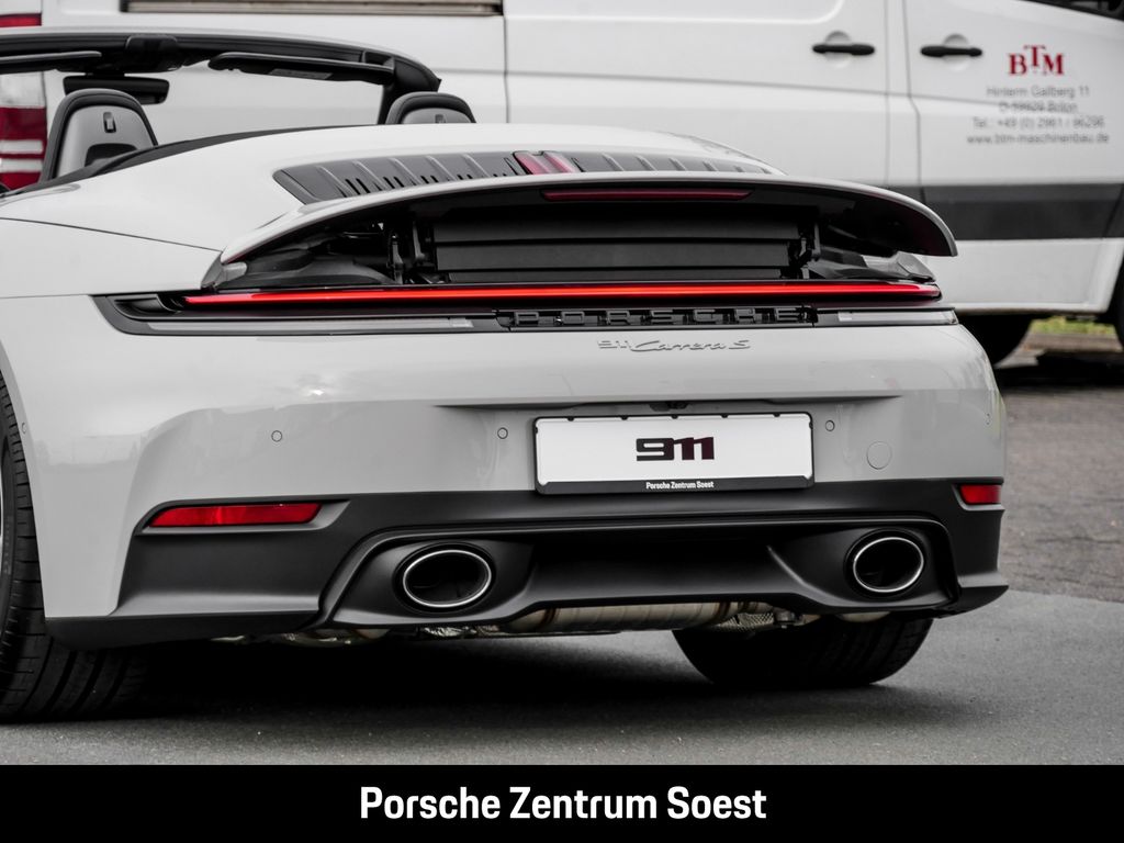 - Weiteres: Zum Verkauf steht ein Porsche 911 Carrera S Cabriolet der Baureihe 992, Modelljahr 2025 – ein Fahrzeug, das ikonisches Design, beeindruckende Performance und modernste Technik in vollendeter Harmonie vereint. Offen gefahren entfaltet dieses Cabriolet seine ganze Faszination und bietet ein Fahrerlebnis, das Emotion und Präzision perfekt verbindet. Das Exterieur präsentiert sich ausgesprochen sportlich und zugleich elegant. Die klare Linienführung des 992, kombiniert mit ausgewählten Design- und Exterieuroptionen, unterstreicht den selbstbewussten Auftritt dieses 911. Das elektrisch betätigte Stoffverdeck ermöglicht jederzeit echtes Open-Air-Feeling, ohne Kompromisse bei Komfort oder Alltagstauglichkeit einzugehen. Im Innenraum erwartet Sie ein hochwertig ausgestattetes Cockpit mit klarer Fahrerorientierung. Edle Materialien, fein abgestimmte Farb- und Ziernahtkonzepte sowie moderne Bedienelemente schaffen eine sportlich-luxuriöse Atmosphäre. Komfortsitze mit umfangreichen elektrischen Verstellmöglichkeiten sorgen ebenso für Langstreckenkomfort wie für perfekten Seitenhalt bei dynamischer Fahrweise. Sportliche Akzente wie das GT-Sportlenkrad, die Sport-Chrono-Ausstattung sowie exklusive Interieurdetails runden das Gesamtbild ab. Technologisch überzeugt das Fahrzeug mit einer Vielzahl moderner Assistenz- und Komfortsysteme. Ein hochauflösendes Infotainmentsystem, erweiterte Konnektivitätsfunktionen sowie optionale Fahrerassistenzsysteme sorgen für Sicherheit, Komfort und ein zeitgemäßes Fahrerlebnis. Akustisch wird das Ganze – je nach Ausstattung – durch ein hochwertiges Soundsystem auf Premium-Niveau begleitet. Der leistungsstarke Carrera-S-Antrieb steht für souveräne Beschleunigung, präzises Handling und ein emotionales Klangbild. In Kombination mit dem perfekt abgestimmten Fahrwerk bietet dieses Cabriolet sowohl auf kurvigen Landstraßen als auch auf der Autobahn ein außergewöhnlich sportliches, gleichzeitig aber komfortables Fahrgefühl.