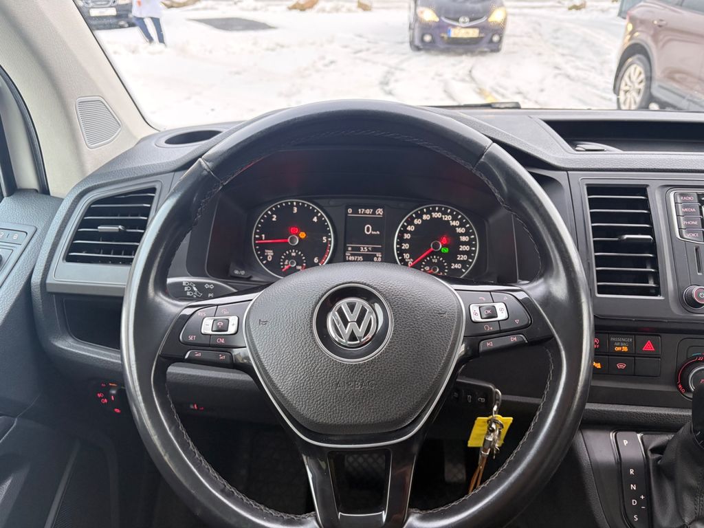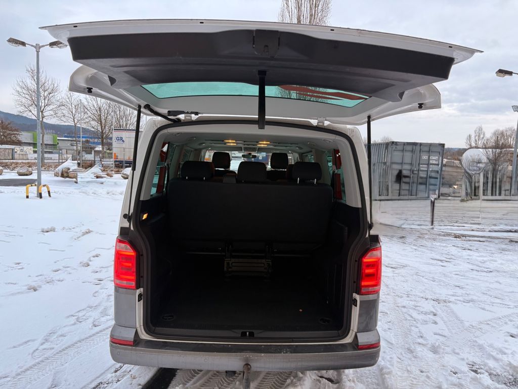 Sonderausstattung:Audio-Navigationssystem Discover Media (Touchscreen-Farbdisplay), Ausstattungs-Paket Licht + Sicht, Bodenbelag: Gummi (vorn und hinten), Fahrassistenz-System: Autom. Distanzregelung (ACC) und Umfeldbeobachtungssystem (Front Assist, bis 210 km/h), Fahrassistenz-System: Einparkhilfe vorn und hinten mit Rückfahrkamera, Frontscheibe Dämmglas, heizbar, Innenentriegelung Heckklappe / Heckflügeltüren, Isofix-Aufnahmen für Kindersitz an Rücksitz, LM-Felgen 6,5x16 (Clayton), Radioempfang digital (DAB+), Scheinwerfer und Heckleuchten LED, Sitz-Paket: 8-Sitzer, 2-3-3 (2 Einzelsitze, 2er-Sitzbank und Einzelsitz, 3er-Sitzbank), Sitze im Fahrerhaus: Fahrer- und Beifahrersitz heizbar, Verglasung hinten abgedunkelt