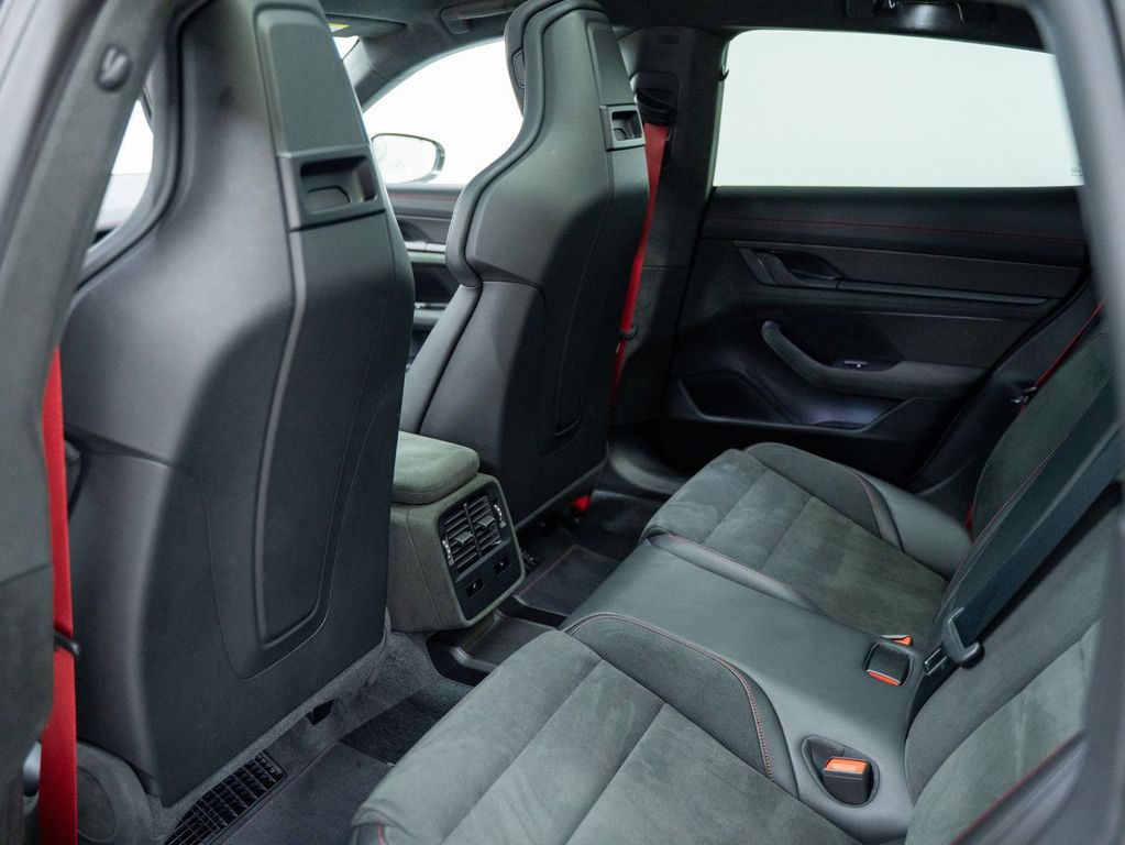 Optisch präsentiert sich der GTS zurückhaltend: ein tiefergelegtes Sportfahrwerk, dunkle Akzente und die unverkennbare Silhouette des Taycan. Auch der Innenraum setzt sich fort: Race-Tex-Polsterung, Sportsitze – alles ist auf den Fahrer ausgerichtet.