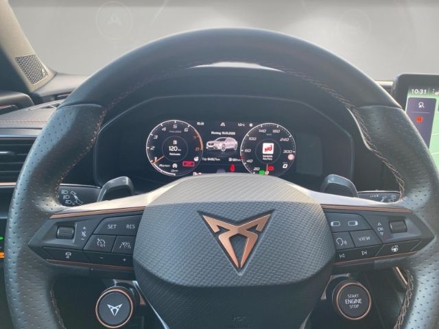 - Weiteres: Wireless Full Link Connectivity inkl. Android Auto und Apple CarPlay, Beats Audio Soundsystem, Magnetic Grau Metallic, Connectivity-Box inkl. Wireless Charger, Panorama-Glas-Schiebedach, Matrix-LED-Scheinwerfer, CUPRA Leder Schwarz, CUPRA CUP Leder-Paket, Schwarz inkl. CUP Supersport-Schalensitz inkl. Winter-Paket, Antriebs-Schlupfregelung (ASR), Antriebsart: Allradantrieb, Isofix-Aufnahmen für Kindersitz an Rücksitz, Rücksitzlehne geteilt/klappbar (1/3-2/3), Einparkhilfe hinten, Parkbremse elektrisch, Airbag Beifahrerseite abschaltbar, Notrufsystem, Reserverad als Notrad, Rückfahrkamera, USB-Schnittstelle vorn (2-fach, Typ C), Fensterheber elektrisch vorn + hinten mit Komfortschaltung, Kombiinstrument digital (virtual cockpit), Nebelscheinwerfer LED mit Abbiegelicht, Schadstoffarm nach Abgasnorm Euro 6d, LM-Felgen, Getriebe 7-Gang - Doppelkupplungsgetriebe DSG, Lenkrad heizbar (CUPRA Supersport, Leder) mit Multifunktion und Schaltfunktion, Seitenscheiben hinten und Heckscheibe abgedunkelt, Außenspiegel elektr. verstell-, heiz- und anklappbar mit Spiegelabsenkung und Welcome Light, Lichtassistent (Coming Home, Leaving Home), Audio-Navigationssystem mit Touchscreen Farbbildschirm, Audiosystem: BeatsAudio Soundsystem, Schließ-/Startsystem Kessy Advanced, Sitzbezug / Polsterung: Leder, Super-Sport-Schalensitze vorn mit integrierten Kopfstützen, Leder-Paket, Cup, Anti-Blockier-System (ABS), Kopf-Airbag-System, Gepäckraumabdeckung / Rollo, Reifenkontroll-Anzeige, Seitenairbag, Wegfahrsperre (elektronisch), Licht- und Regensensor, Airbag Fahrer-/Beifahrerseite, Mittelkonsole vorn mit Mittelarmlehne, Becherhalter, Ablagebox und Luftausströmer hinten, Dachreling schwarz, hochglänzend, USB-Ladeanschlüsse (2-fach, Typ C) für 2.Sitzreihe, Heckleuchten LED mit dynamischem Blinklicht, Heckleuchten Voll-LED mit dynamischem Lichtband (Infinite Light), Metallic-Lackierung, Panorama Schiebe-/Hebedach elektrisch, Full Link (MirrorLink, Apple CarPlay und Android Auto), Adaptive Fahrwerksregelung (DCC), Automatische Distanzregelung (ACC), Blinkleuchten LED in Außenspiegel integriert, Bluetooth-Schnittstelle mit Freisprecheinrichtung, Climatronic 3-Zonen, Einstiegsleisten (Aluminium) vorn, beleuchtet