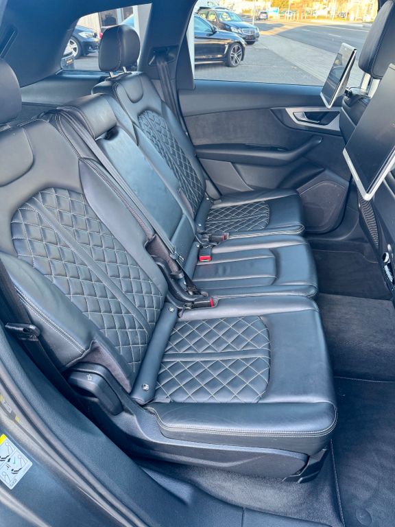 Sonderausstattung:Ambiente-Beleuchtung, Anhängerkupplung mit Anhängerassistent, Assistenz-Paket Stadt, Audi connect (Internetbasierende Dienste), Audi connect (Notruf- und Assistance-System), Außenspiegel elektr. verstell-, heiz- und anklappbar, mit Memory, Außenspiegel schwarz, Bremssättel Rot lackiert, Dachhimmel Stoff, schwarz, Dachreling schwarz, Diebstahlsicherung für Räder (Felgenschlösser), Fahrassistenz-System: Verkehrszeichenerkennung, Fixierset für Schienensystem im Gepäckraum, Head-up-Display, Klimaautomatik 4-Zonen, Kombiinstrument digital (virtual cockpit), Komfortschlüssel mit sensorgesteuerter Heckklappenentriegelung und Diebstahl-Warnanlage, Kopfstützen variabel verstellbar, Lenkrad (Sport/Leder - 3-Speichen, unten abgeflacht) mit Multifunktion plus, LM-Felgen 10x22 (5-V-Speichen, Stern-Design, Titanoptik, hochglanzpoliert), Matrix-LED-Scheinwerfer, Multi-Media-Interface MMI Navigation Plus mit MMI Touch, Optik-Paket schwarz Audi exclusive, Perleffekt-Lackierung, Rear Seat Entertainment RSE mit 2 Tablet, Rücksitze (2. Reihe) verschiebbar (plus), Seitenairbag hinten, Sitzbezug / Polsterung: Leder Valcona mit Logo-Prägung in Vordersitzlehnen, Sitze vorn elektr. verstellbar (mit Memory), Sportsitze plus vorn, Standheizung, Verglasung hinten abgedunkelt (Privacyverglasung), Wagenheber