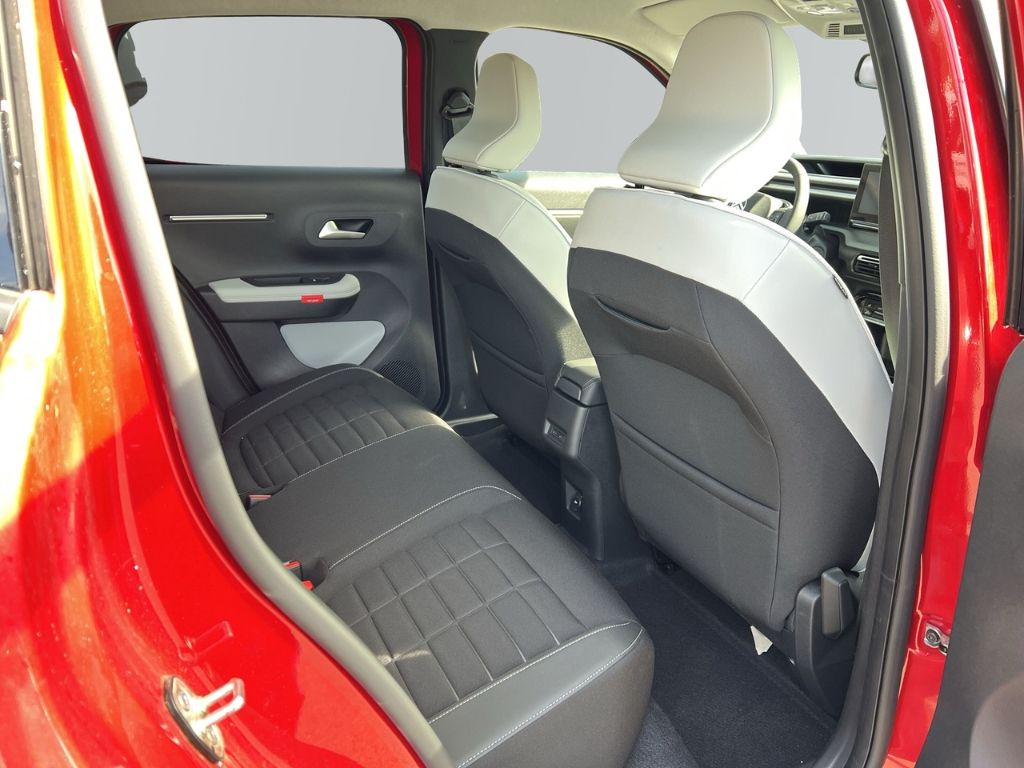 - Weiteres: Antriebs-Schlupfregelung (ASR), Reifendruck-Kontrollsystem, Scheibenwischer mit Regensensor, Isofix-Aufnahmen für Kindersitz an Rücksitz, Reifen-Reparaturkit, Dachreling, Rücksitzbank klappbar 1/3-2/3, Seitenscheiben hinten und Heckscheibe dunkel getönt, LM-Felgen, Fahrmodusschalter, Kindersicherung, manuell, Comfort Federung (Citroen Advanced), USB-/Audio-Schnittstelle (Typ C), USB-/Audio-Schnittstelle (Typ C, 2-fach), Lenkrad (Spaltleder), Elektromotor 83 kW (cont. 53 kW), Head-up-Display (Kombiinstrument hochgesetzt), Ladestation mit Hochleistungs-Steckdose 400 Volt (ePTO), HV-Batterie 44 kWh (Lithium-Eisen-Phosphat), Außenausstattung: Farbclips in Gelb, Sonderlackierung Elixir-Rot Metallic, Airbag Fahrer-/Beifahrerseite, Anti-Blockier-System (ABS), Tagfahrlicht LED, Fensterheber elektrisch vorn, Seitenairbag vorn, Kopf-Airbag-System, Heckleuchten LED, 3D-Optik, 12V-Steckdose, Akustischer Fußgängerschutz, Aufmerksamkeits-Assistent (Müdigkeitserkennungs-Sensor), Außenspiegel elektr. anklappbar, Beifahrerairbag abschaltbar, Berganfahrhilfe, Bremsassistent, Bremsenergierückgewinnung, Einschaltautomatik für Fahrlicht, Elektr. Bremskraftverteilung, Fensterheber elektrisch vorn und hinten, Freisprechanlage Bluetooth, Geschwindigkeits-Begrenzeranlage, Gurtwarner, Induktionsladeschale für Smartphone, Innenausstattung: Ambiente Metropolitan Grey, Klimaautomatik, Parkbremse elektrisch, Polster: Stoff/Kunstleder, Radioempfang Digital (DAB), Scheinwerfer Eco-LED, Sitzhöhenverstellung Fahrersitz, Smartphone Schnittstelle, Spurassistent (AFIL), Verkehrszeichenerkennung, ZV mit Fernbedienung