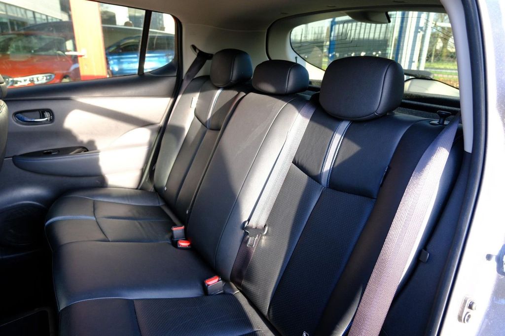 Informationen auf Deutsch:Die gesamte Technologie im Nissan LEAF ist darauf ausgelegt, Ihre Fahrt sicher und komfortabel zu gestalten. Selbst an den kältesten Tagen sorgen das beheizbare Lenkrad, die Sitzheizung vorn und hinten dafür, dass Sie und Ihre Mitfahrer in diesem luxuriösen Fahrzeug nie frieren. Im Nissan LEAF profitieren Sie außerdem von Ausstattungsmerkmalen wie: 17-Zoll-Leichtmetallfelgen, LED-Scheinwerfern, Teilledersitzen, Wärmeschutzglas, einer geteilt umklappbaren Rückbank und LED-Rückleuchten.