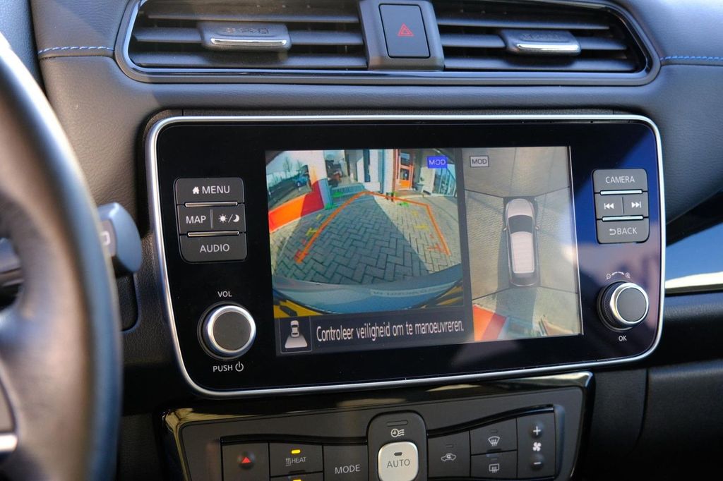 Der Nissan LEAF ist mit ADAS ausgestattet. Diese fortschrittlichen Fahrerassistenzsysteme fungieren als zusätzliche Augen und Ohren: Sie überwachen die Straße und greifen bei Bedarf ein. Dank der automatischen Verkehrszeichenerkennung fahren Sie sicherer. Die wichtigsten Schilder werden auf Ihr Kombiinstrument projiziert, sodass Sie sie nicht übersehen. Der Nissan LEAF unterstützt Sie auch beim Geradeausfahren. Der Spurhalteassistent erkennt und korrigiert unbeabsichtigtes Überfahren der Fahrbahnmarkierung. Der aktive Totwinkelassistent warnt Sie, wenn sich ein anderes Fahrzeug in Ihrem toten Winkel befindet, und reduziert so das Kollisionsrisiko. Dank des Unfallvermeidungssystems, des Frontkollisionswarnsystems, der Berganfahrhilfe, des Bremsassistenten, des Müdigkeitswarnsystems und des Reifendruckkontrollsystems sind Sie jederzeit sicher unterwegs.