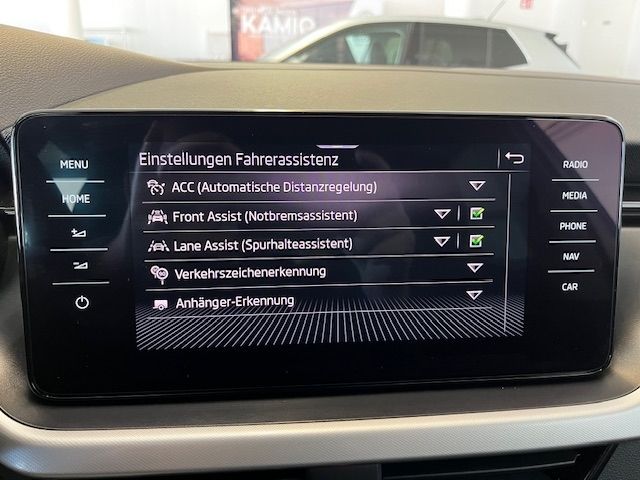 Katalysator; Candy-Weiss; Verzurrösen Koffer-/Laderaum; Sonnenblenden mit Spiegel auf Beifahrerseite und Airbag-Label auf Sonnenblende; Gepäcksicherung / Gepäckbefestigung (Cargo-Elemente); Basis LED SBBR Leuchte; Dekor-Einlagen Silver Haptic; Radstand 2651 mm; "FRONT ASSIST" inkl. adaptive cruise control Adaptiv cruise control (f}r DSG) mit Speedlimiter