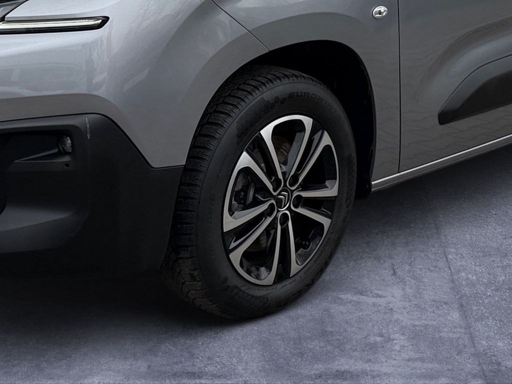 Dieser gepflegte Citroën Berlingo überzeugt als vielseitiger Familienbegleiter mit nur einem Vorbesitzer. Der 110 PS starke 3-Zylinder Benzinmotor mit 1199 ccm Hubraum bietet dank Frontantrieb und manuellem Getriebe ein angenehmes Fahrerlebnis. Das Fahrzeug aus 2024 erfüllt die Euro 6 Norm und trägt die grüne Umweltplakette. Mit einer Nutzlast von 609 kg und einer gebremsten Anhängelast von 1150 kg ist der Berlingo auch für Transportaufgaben bestens gerüstet.Die graue Metallic-Lackierung harmoniert perfekt mit dem grauen Stoffinterieur. Der Innenraum bietet Platz für 5 Personen und überzeugt mit zahlreichen Komfortmerkmalen wie Klimaanlage, beheizbaren Sitzen, Lenkradheizung und digitalem Cockpit mit Touchscreen. Die serienmäßige Schiebetür rechts erleichtert den Einstieg. Moderne Assistenzsysteme wie Spurhalteassistent, Müdigkeitswarner und Notrufsystem sorgen für Sicherheit.