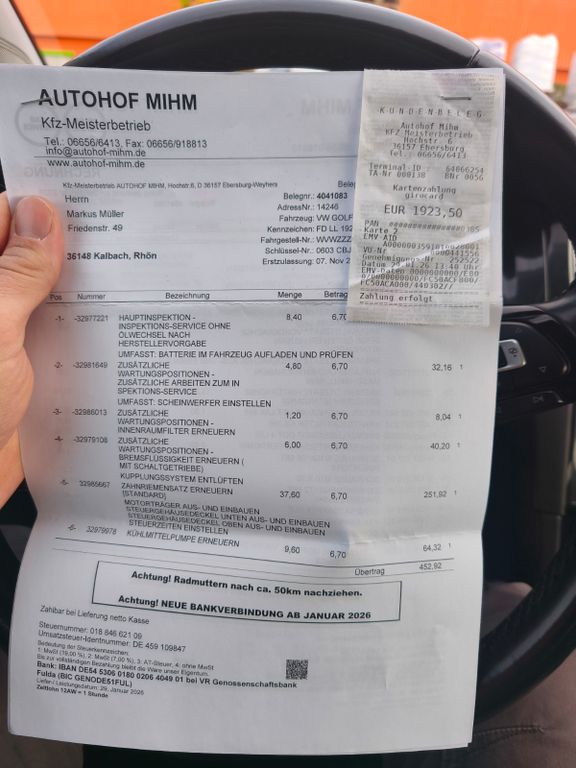 Die große Wartung wurde gerade im Januar 2026 durchgeführt in einer VW Vertragswerkstatt.