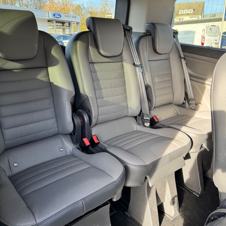 2. Batterie, Airbag Beifahrerseite, Airbag Fahrerseite, Anhänger-Stabilisierungs-Programm (TSA), Audiosystem 24/25: Navigationssystem inkl. SYNC 3 mit AppLink und 8" Multifunktionsdisplay, Außenspiegel elektr. anklappbar, Außenspiegel elektr. verstell- und heizbar, Bi-Xenon-Scheinwerfer mit Abbiegelicht, Blinkleuchte in Außenspiegel integriert, Bodenbelag: Teppich im Lade-/Fahrgastraum, Bordcomputer, Dachverkleidung Himmel im Fahrgastraum, Einstiegsleuchten, Elektr. Bremskraftverteilung (EBD), Elektron. Traktionskontrolle, Fahrassistenz-System: Berganfahr-Assistent, Fahrassistenz-System: Notbrems-Assistent, Fahrassistenz-System: Notrufsystem, Fahrassistenz-System: Seitenwind-Assistent, Fahrzeugschlüssel programmierbar (nur Fahrertür), Fenster im Lade-/FG-Raum: - ausstellbar, hinten links/rechts, Fenster im Lade-/FG-Raum: - feststehend, 3.Reihe links, Fenster im Lade-/FG-Raum: - feststehend, 3.Reihe rechts, FordPass Connect inkl. eCall, Generator 240 A, Getriebe Automatik SelectShift - (6-Stufen), Haltegriff B-Säule, Handschuhfach abschließbar, Heckklappe mit Verglasung, Karosserie/Aufbau: Kombi Standard, Karosserievariante: Normaldach, Lenksäule (Lenkrad) höhen-/längsverstellbar, Modellpflege, Motor 2,0 Ltr. - 125 kW TDCi KAT, Parkpilotsystem vorn und hinten, Radstand 2933 mm, Reifen 215/60 R17C, Reifendruck-Kontrollsystem, Reserverad als Notrad, Rückfahrkamera mit Farbdisplay, Rücksitz-Paket 8 (3 Einzelsitze 2.Reihe, abnehmbar / 3 Einzelsitze 3.Reihe, abnehmbar), Schadstoffarm nach Abgasnorm Euro 6d, Scheibenwischer mit Intervallschaltung, regulierbar, Schiebetür Lade-/Fahrgastraum links, Schiebetür Lade-/Fahrgastraum rechts, Schmutzfänger vorn und hinten, Seitenschutzleisten in Wagenfarbe, Sicht-Paket 2, Sitz-Paket 35/36: Fahrersitz (5-fach verstellbar, elektr.) - Beifahrereinzelsitz (4-fach) Seitenairbag, Leder, Sonnenblende links mit Spiegel (beleuchtet), Sonnenschutzrollo an Seitenscheiben Fahrgastraum, Start/Stop-Anlage, Steckdose 12V im Lade-/Fahrgastraum, Style-Farb-Paket, Tagfahrlicht LED, Titanium X, Trittstufe unter Schiebetür links, Trittstufe unter Schiebetür rechts, Verglasung hinten abgedunkelt (Privacy Glass), Verglasung stark getönt, Verzurrösen (2), Wankneigungskontrolle (Roll Stability Control, RSC), Wärmeschutzverglasung Lade-/Fahrgastraum, mittlerer Tönungsgrad, Zusatzheizung elektrisch