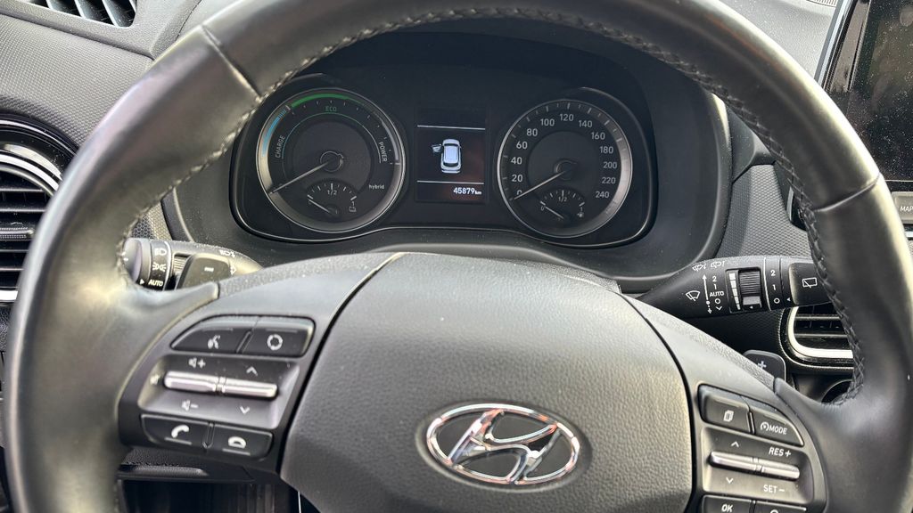 Hauptmerkmale des Fahzeugs:Effizienter Hybridantrieb: Der KONA Hybrid kombiniert einen 1,6-Liter-Benzinmotor (GDi) mit einem Elektromotor für eine Systemleistung von 141 PS. Die Batterie wird automatisch beim Bremsen und Ausrollen aufgeladen, was zu einem kombinierten Verbrauch von nur ca. 4,3 l/100km und CO₂-Emissionen von etwa 99 g/km (kombiniert, je nach Modelljahr und spezifischer Konfiguration) beiträgt.