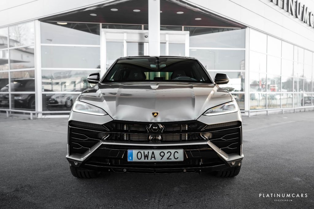 Lamborghini Urus SE 2025 with a whopping 800hp! Painted in Shiny Grigio Antares via Ad Personam with black leather interior with contrast stitching and only 4000km!Equipment: Black contrast elements: roof - door mirrors, Rims: 23" Galanthus, high-gloss black, Full leather with contrast stitching in Grigio Cronus, Electric seats with ventilation & massage + heating also in the rear seat, Multifunction steering wheel in full leather (heated), Ambient lighting, Embroidered Lamborghini in headrest, Black brake calipers, Park Assist with Remote Park Assist, Bang & Olufsen 3D sound system, Lamborghini Connect Vehicle Tracking System, Akrapovic sports exhaust system in titanium, Panoramic glass roof, 360 camera, Alcantara headliner, Extended leather/alcantara on dashboard, Lamborghini logo embroidery in headrest, Plug in hybrid, Deductible VAT etc.