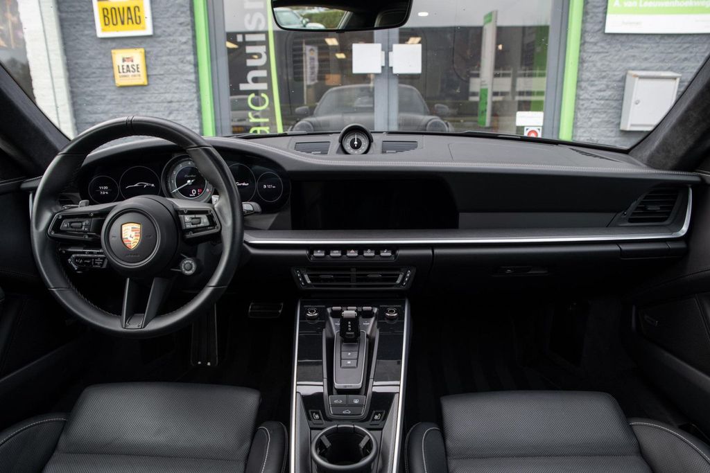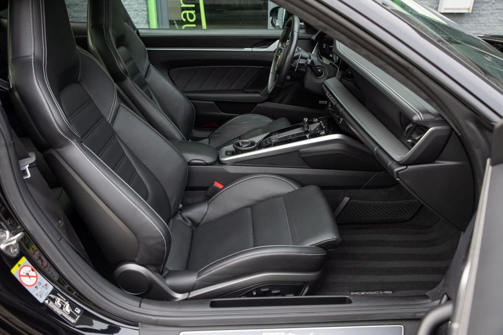 Stunning Porsche 911 992 Coupe 3.8 Turbo. Equipped in Deep Black Metallic with black leather upholstery and "chalk" color stitching. Equipped with, among other things, a Race-Tex (Alcantara) headliner, electrically operated glass sliding/tilting roof, lift system on the front axle, adaptive cruise control and 18-way adjustable adaptive sports seats with memory package. Fully Porsche dealer maintained. Equipped with many factory options such as: