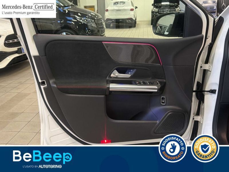 La vettura è completa nella dotazione optional di -Interfaccia USB nello scomparto multiuso e due interfacce USB nella consolle centrale posterio-ADAPTIVE BRAKE con funzione HOLD.-AMG Line Pack-Advanced Sound System-Airbag frontali per guidatore e passeggero-Alette parasole con deflettore estendibile-Attention Assist-Bracciolo della consolle centrale ripiegabile per guidatore e passeggero-Brake Assist attivo-Cambio automatico 8G-DCT-Cassetto portaoggetti con serratura.-Cerchi AMG da 18"" a 5 razze neri-Cerchi in lega sportivi AMG da18""a 5 doppie razze-Chiamata di emergenza Mercedes-Benz-Climatizzatore automatico COMFORTMATIC-Cofano motore attivo per la sicurezza pedoni.-Cristalli laterali posteriori e lunotto oscurati-Cruise Control-DISTRONIC PLUS con Cross-Traffic Assist-Disattivazione automatica airbag lato passeggero.-Display head-up-Display sulla plancia con diagonale da 10,25""-Dynamic Select-Fari LED High Performance-Funzione eco Start/stop-Funzioni avanzate MBUX-Illuminazione del vano bagagli-Impianto frenante sportivo-Inserti effetto carbonio-Istruzioni + Libretto di manutenzione - tedesco-Kneebag per il guidatore-Luci soffuse «ambient» con 64 diversi colori-MY802-Manuale istruzioni italiano-Modulo LTE per Mercedes me connect-Pianale del vano di carico regolabile in altezza ed estraibile-Portabevande doppio-Portaoggetti nella consolle con avvolgibile-Portellone posteriore EASY-PACK-Predisposizione per chiave digitale-Presa da 12 V nel vano bagagli-Presa di corrente a 12 V nello scomparto multiuso-Reti portaoggetti sugli schienali sedili anteriori-Rilevamento automatico del limite velocità -Schienali dei sedili posteriori ripiegabili (40:20:40)-Sedile anteriore destro regolabile elettr. memoria-Sedile guidatore con funzione Memory-Sedile posteriore con schienale ad abbattimento-Sedili anteriori riscaldabili elettricamente-Sedili sportivi anteriori-Servizi accesso remoto- (3 anni)-Sidebag per guidatore e passeggero anteriore (airbag combinato per torace/bacino)-Sistema antisbandamento attivo-Sistema attivo regolazione della distanza-Sistema di assistenza in presenza di vento laterale-Sistema di controllo della pressione pneumatici-Sistema multimediale MBUX-Soglie d'ingresso anteriori ill. cover cambiabile-Sterzo parametrico con servoassistenza variabile in funzione della velocità -Styling AMG-Supporto lombare regolabile su 4 parametri-Tappetini in velours sportivi AMG-Telecamera posteriore per la retromarcia assistita-Tergicristalli con sensore pioggia-Tetto Panorama scorrevole-Tirefit-Touchpad-Volante sportivo multifunzione in pelle Nappa-Windowbag