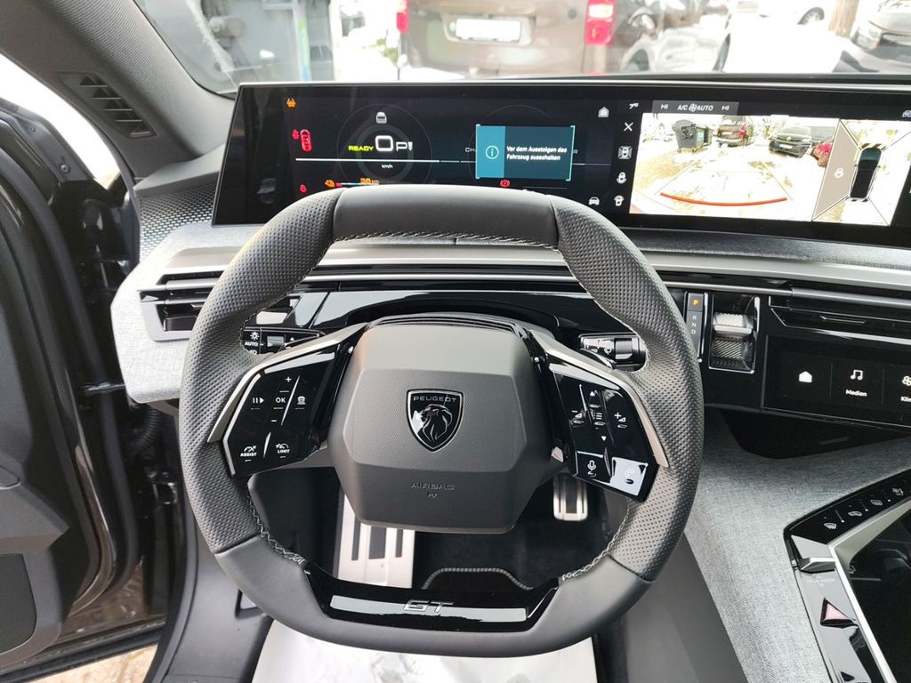 - Weiteres: Dual-Elektromotor Leistung vorn in 157kW (213PS) / hinten 83kW (113PS), Systemleistung max. 239kW, 30-Minuten-Leistung 136 kW, Ladedauer AC 11-kW-Ladestation 3-phasig (20–80 %) ca. 4h 50min, Ladestandard DC CCS 160 kW/ AC Typ2 11kW 3-phasig, Elektrisches Panorama-Ausstell-/Schiebedach, Luftqualitätssystem Clean Cabin, FOCAL-Soundsystem, Akustische Verbundglas-Seitenscheiben vorn, bordeigener Sprachassistent inkl. ChatGPT, Polster: Alcantara/ Kunstleder mit Ziernähten in Grün, Ergonomische Komfortsitze mit AGR-Gütesiegel, Elektrisch anpassbare Seitenkissen für Fahrer- und Beifahrersitz, Fahrersitz elektrisch verstellbar mit Memory, Vordersitze: 4-Wege-Lendenwirbelstütze elektrisch/ ausziehbare Oberschenkelauflage/ elektr. Neigungsverstellung der Sitzfläche, 360°-Rückfahrkamera, Toterwinkelassistent, Ausparkassistent Rear Cross Traffic Alert, Antizipierte Geschwindigkeitserkennung, Spurpositionierungsassistent inkl. halb-automatischem Spurwechselassistent, Alarmanlage inkl. Rundum/Innenraum/Abschleppschutz/Safesicherung, Induktive Ladestation (15 W), Black-Diamond-Dach (Dach in Perla Nera Schwarz), Schwebender Heckspoiler in glänzendem Schwarz, Aero-Leichtmetallfelgen 20-Zoll zweifarbig, Schriftzug E-3008 und DUAL MOTOR auf der Kofferraumklappe, i-Cockpit mit 21-Zoll-HD-Curved-Panoramadisplay und i-Toggles/ Mehrfensterfähigkeit mit Widgets und Shortcuts/ konfigurierbare virtuelle Tasten, Mittelarmlehne vorn zweiteilig mit Staufach beleuchtet und klimatisiert, Bidirektionaler On-Board-Charger 11kW 3-phasig inkl. Vehicle-to-Load-(V2L)-Vorbereitung, Full-LED-3D-Heckleuchten, adaptive LED-Pixel-Scheinwerfer mit 3-Krallen-Tagfahrlicht, Einstiegsleisten in Edelstahl, Heckklappe sensorgesteuert, Mittelarmlehne hinten, 2 USB-C-Anschlüsse vorn, 2 USB-C-Anschlüsse hinten, Vernetzte 3D-Navigation TomTom inkl. Over-the-Air-Kartenupdates, EV-Routing-Funktion mit Ladeplanung, Automatischer Geschwindigkeitsregler ACC mit STOP & GO-Funktion, Einparkhilfe vorn und hinten, Lenkradheizung, LED-Innenbeleuchtung