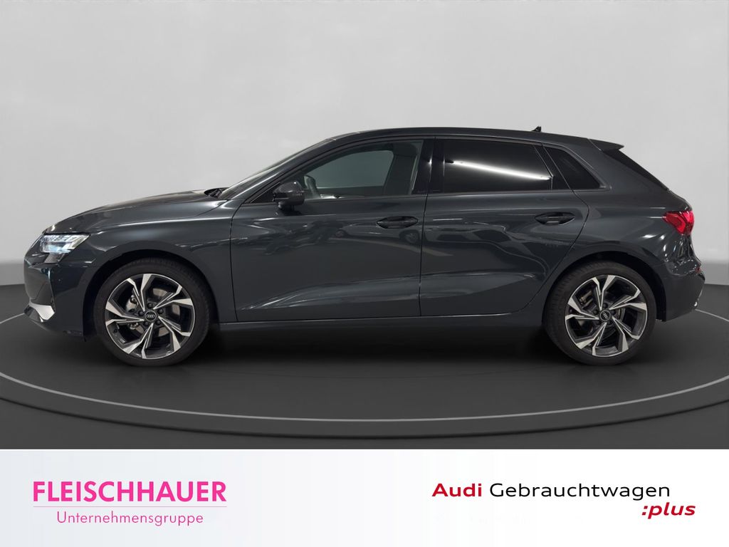- Weiteres: Navigations-Paket, Navigation Plus mit MMI Touch, Panorama-Ausstelldach elektrisch, LM-Felgen 8x18 (5-Y-Speichen, graphitgrau, glanzgedreht), Klima-Paket, Metallic-Lackierung, Scheinwerfer LED, Parklenkassistent mit selektiver Anzeige, Komfort-Paket Plus, Anhängerkupplung (Kugelkopf abnehmbar), Head-up-Display, Sportsitze vorn, Adaptive Geschwindigkeitsregelanlage (Adaptive Cruise Control) mit Autom. Distanzregelung, Spurwechselassistent (Side Assist) mit Ausstiegswarnung und Querverkehrs-Assistent, Sound-System Sonos Premium, Interieur-Paket: Sportsitze, Rückfahrkamera, Bluetooth-Freisprecheinrichtung mit Spracherkennung (Audi Phone Box), Audi Application Store und Smartphone Interface, Verglasung hinten abgedunkelt (Privacyverglasung), Gepäckraumklappe elektr. betätigt (öffnen + schliessen), Audi connect (Internetbasierende Dienste), Sitzheizung vorn, Rücksitzlehne geteilt/klappbar, Lendenwirbelstützen vorn, elektr. verstellbar, Innenspiegel mit Abblendautomatik, Kombiinstrument digital (virtual cockpit plus), Anfahr-Assistent (hold assist), Innenausstattung: Aluminium-Optik, Isofix-Aufnahmen für Kindersitz an Beifahrersitz und Rücksitz, Raucher-Paket, Sitzbezug / Polsterung: Stoff Routine, Einstiegsleisten mit Aluminiumeinlage, Heckleuchten LED mit dynamischem Blinklicht, Abbiege-Assistent links, Assistenz-Paket Fahren, Außenspiegel elektr. anklappbar mit Memory, Außenspiegel rechts mit Bordsteinautomatik, Bremsassistent (Audi pre sense front), Dachhimmel Stoff, Insassen-Schutzsystem (Audi pre sense basic) inkl. Audi pre sense rear, Klimaautomatik 3-Zonen, Sicherheits-Paket plus, Spurverlassenswarnung inkl. Notfall-Assistent, Kopf-Airbag-System (Sideguard), Servolenkung elektro-mechanisch, Seitenairbag vorn mitte (Interaktionsairbag), Lenkrad (Leder - 3-Speichen) mit Multifunktion plus und Schaltfunktion, Ambiente-Beleuchtung (Multicolor-LED), Airbag Beifahrerseite abschaltbar, Schadstoffarm nach Abgasnorm Euro 6e, Kindersicherung elektr. betätigt, Vorbereitung Smartphone Interface, Einparkhilfe vorn und hinten, akustisch und optisch mit selektiver Anzeige (APS Plus), Schließ-/Startsystem Advanced Key (Komfortschlüssel), Wärmeschutzverglasung grün getönt, Mild-Hybrid 85 kW (Motor 1,5 Ltr. - 85 kW TFSI), Einparkhilfe vorn und hinten, akustisch und optisch mit selektiver Anzeige (APS Plus), Start-Stop-Knopf, Wegfahrsperre (elektronisch), Licht- und Regensensor, Stoßfänger Ausführung: advanced, Seitenairbag vorn, Airbag Fahrer-/Beifahrerseite, USB-Ladeanschlüsse (2-fach, Typ C) für Fondpassagiere, Audi connect (Notruf- und Assistance-System), Ausweich-Assistent, Geschwindigkeits-Begrenzeranlage,Isofix-Aufnahmen für Kindersitz, Kopfstützen hinten, Müdigkeitserkennung (Pausenempfehlung), Multifunktionskamera, Notfall-Assistent mit automatischem Notruf, Parkbremse elektro-mechanisch, Radioempfang digital (DAB)