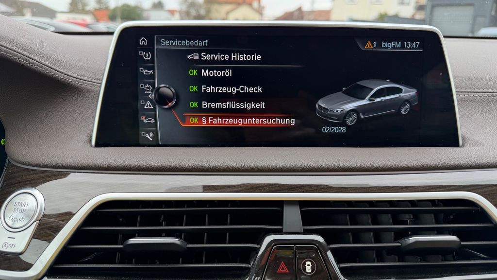 Fußmatten Velours, Fußraumbeleuchtung hinten, Fußraumbeleuchtung vorn, Gepäckraumbeleuchtung, Getränkehalter vorn und hinten, Heckklappenbetätigung automatisch, Heckleuchten LED, Innenausstattung: Interieurleisten Edelholz Fineline, Isofix-Aufnahmen für Kindersitz, Karosserie: 4-türig, Kopf-Airbag-System hinten, Kopf-Airbag-System vorn, Lenkrad (Sport/Leder) mit Multifunktion, Lenksäule (Lenkrad) elektr. verstellbar, mit Memory, Leseleuchten hinten, Leseleuchten vorn, Luftauslass (Air Breather) Chrom, Lufteinlassblende Chrom, Mittelarmlehne hinten, Motor 3,0 Ltr. - 195 kW 24V Turbodiesel, Navigations-Paket ConnectedDrive, Park-Distance-Control (PDC) vorn und hinten, Parkbremse elektrisch, Personalisierungssystem (Personal Profile), Radstand 3070 mm, Reifendruck-Kontrollsystem, Schadstoffarm nach Abgasnorm Euro 6, Scheibenwaschdüsen heizbar, SCR-System (AdBlue-Technologie), Seitenairbag, Seitenairbag hinten, Seitenairbag vorn, Service-System: Intelligenter Notruf inkl. TeleServices, Sicherheitssystem Active Protection, Sitzausstattung: 5-Sitzer, Sitzheizung vorn, Start-Stop-Knopf, Start/Stop-Anlage (Funktion), Steckdose (12V-Anschluß) in Mittelkonsole und Koffer-/Laderaum (4-fach), Warndreieck, Wärmeschutzverglasung getönt, Ziergitter verchromt