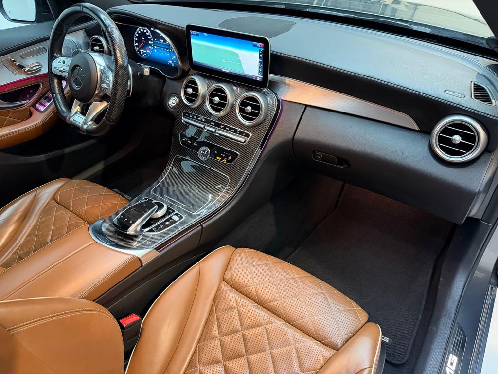 Ambiente-Beleuchtung, AMG Optik-Paket, Ausstattungs-Paket: Business Plus, Ausstattungs-Paket: designo Interieur (Sattel-Braun / schwarz), Bürofunktion im Fahrzeug, Fahrassistenz-Paket Advanced, Fahrassistenz-System: Fernlichtassistent Adaptive plus, Head-up-Display (Frontsichtanzeige), Heckklappe mit automatischem Öffnungs- und Schließsystem, Infotainment-Paket High-End, Innenausstattung: Zierteile Carbon (AMG), Intelligent Light System LED, Kombiinstrument mit Variabler Anzeige (Widescreen Cockpit), Komfort-Paket Advanced, LM-Felgen vorn/hinten: 7,5x19 / 8,5x19 (AMG, Vielspeichen, mattschwarz, Felgenhorn glanzgedreht), Metallic-Lackierung, Night-Paket, Panorama-Schiebedach, Park-Paket Advanced, Service-System: Erweiterte Navigationsdienste, Sport-Auspuffanlage (AMG Performance), Surround-System Burmester, Vorrüstung Mobiltelefon/Handy / Komfort-Telefonie / LTE-fähig, Zeituhr (Analog)