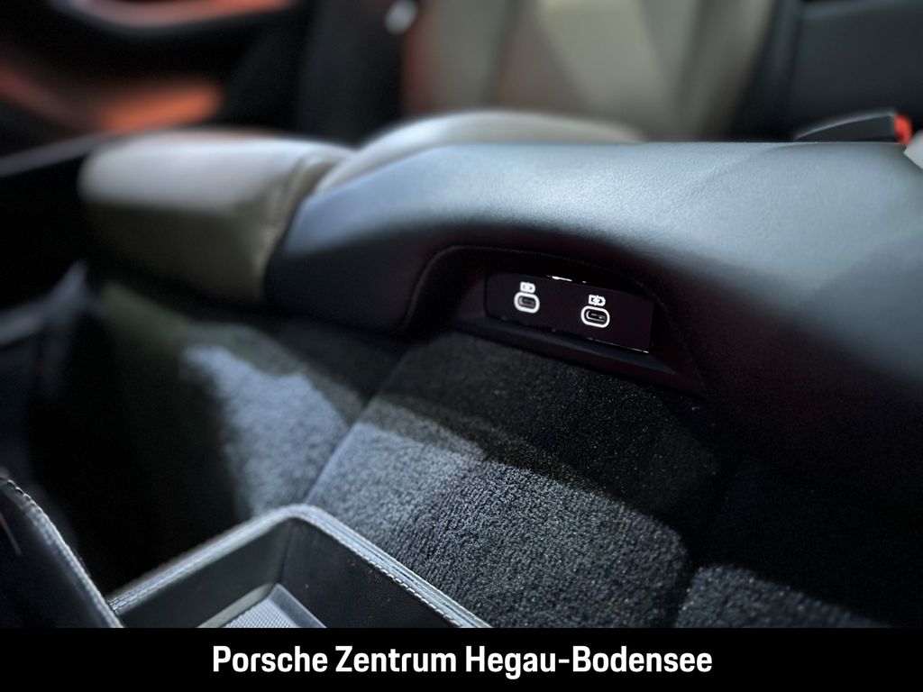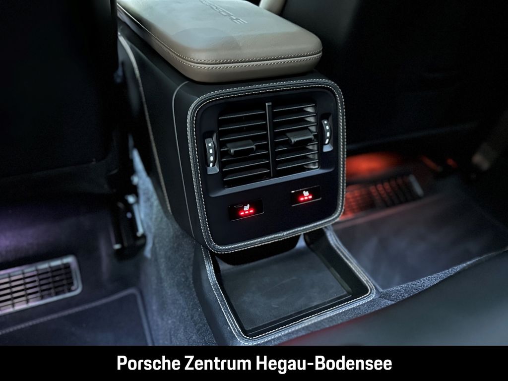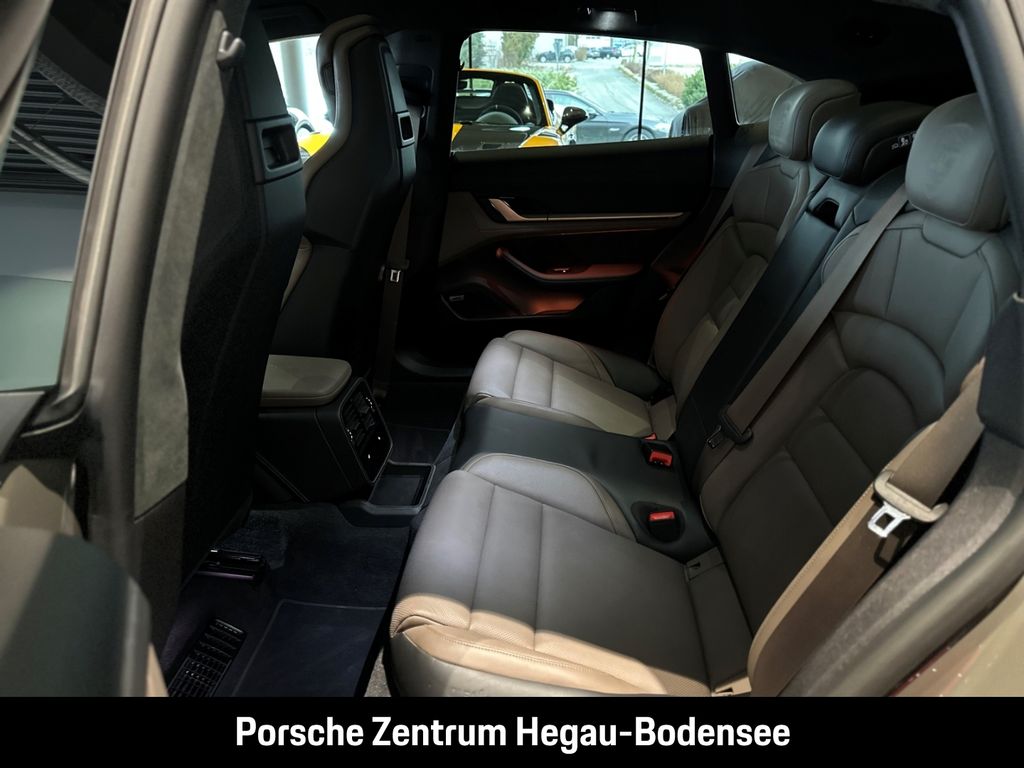 - Weiteres: (2JZ) Offroad Design Paket inkl. Einleger lackiert in Schwarz (hochglanz), (3S2) Dachreling Aluminium schwarz, (6FJ) Außenspiegel-Unterschalen lackiert in Exterieurfarbe inkl. Spiegelfuß lackiert in Schwarz (hochglanz), (6XV) Elektrisch anklappbare Außenspiegel, (QJ4) Seitenscheibenleisten in Schwarz (hochglanz), (UD1) LED-Türprojektoren „PORSCHE“ Schriftzug, (0NC) Modellbezeichnung lackiert in Schwarz (hochglanz), (NG1) Vorrüstung Fahrradheckträger, (8M2) Blende Heckscheibenwischer lackiert in Schwarz (hochglanz), (8LU) Sport Chrono Paket mit Porsche Design Subsecond Uhr, (0N5) Hinterachslenkung inklusive Servolenkung Plus, (1LX) Porsche Ceramic Composite Brake (PCCB) mit Bremssätteln lackiert in Schwarz (hochglanz), (1NQ) Räder lackiert in Aurum (seidenglanz), (1PE) Diebstahlhemmende Radsicherungsschrauben, (54C) 21-Zoll Cross Turismo Design Räder, (2V4) Ionisator, (QQ1) Ambientebeleuchtung, (Q1J) Adaptive Sportsitze Plus vorne (18-Wege, elektrisch) mit Memory-Paket, (5KA) 4+1 Sitzanlage, (4A4) Sitzheizung vorne und hinten, (4D3) Sitzbelüftung vorne, (2PJ) Lenkradheizung (i.V.m. Sport Chrono Paket und Lederausstattungen), (FX3) Sicherheitsgurte merantibraun, (3CX) Gepäckraumtrennnetz, (ALH) Haltegriffe Dachhimmel Leder - merantibraun, (6E7) „PORSCHE“ Schriftzug auf Deckel Ablagefach Mittelkonsole, (5ZF) Porsche Wappen auf Kopfstützen (Vorder- und äußere Fondsitze), (5XH) Sonnenblenden Leder, (5HB) Abschlussblenden Schalttafel Leder, (APU) Ablageschale Mitteltunnel im Fond Leder - merantibraun, (APV) Interieur-Zusatzpaket Türtafel Leder - merantibraun, (APW) Interieur-Zusatzpaket Mittelkonsole Leder - merantibraun, (6NC) Dachhimmel Race-Tex, (VT9) Türeinstiegsblenden Aluminium gebürstet in Schwarz, beleuchtet, (JH1) Beifahrerdisplay, (9VL) BOSE® Surround Sound-System, (7I2) Porsche Vehicle Tracking System Plus (PVTS Plus), (9WU) Vorrüstung Porsche Rear Seat Entertainment, (GM3) Porsche Electric Sport Sound, (2W9) Elektrische Ladeklappe, (QW5) Porsche Intelligent Range Manager, (9M3) Wärmepumpe, (KB4) On-Board AC-Lader mit 22 kW, (NW2) Mobile Charger Connect, (EH2) Kabelverbindung zwischen Bedieneinheit und Fahrzeug: 7,5 m, (76H) Ladekabel (Mode 3), (8IV) LED-Matrix-Hauptscheinwerfer abgedunkelt inkl. Porsche Dynamic Light System Plus (PDLS Plus), (8SP) Leuchtenband mit „PORSCHE Schriftzug schwarz, (4L6) Innenspiegel & Außenspiegel automatisch abblendend, (3FG) Panorama-Festglasdach, (4GP) Windschutzscheibe mit Graukeil, (VW1) Privacy-Verglasung, (KS1) Head-Up Display, (KA6) ParkAssistent inklusive Surround View, (P4R) Remote ParkAssist, (P4S) Porsche InnoDrive inklusive Abstandsregeltempostat, (VC2) HomeLink® (Garagentoröffner), (4F2) Komfortzugang, (QK3) Vorrüstung Porsche Dashcam vorne und hinten
