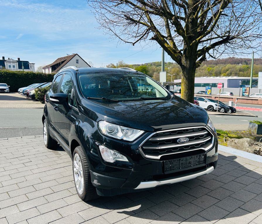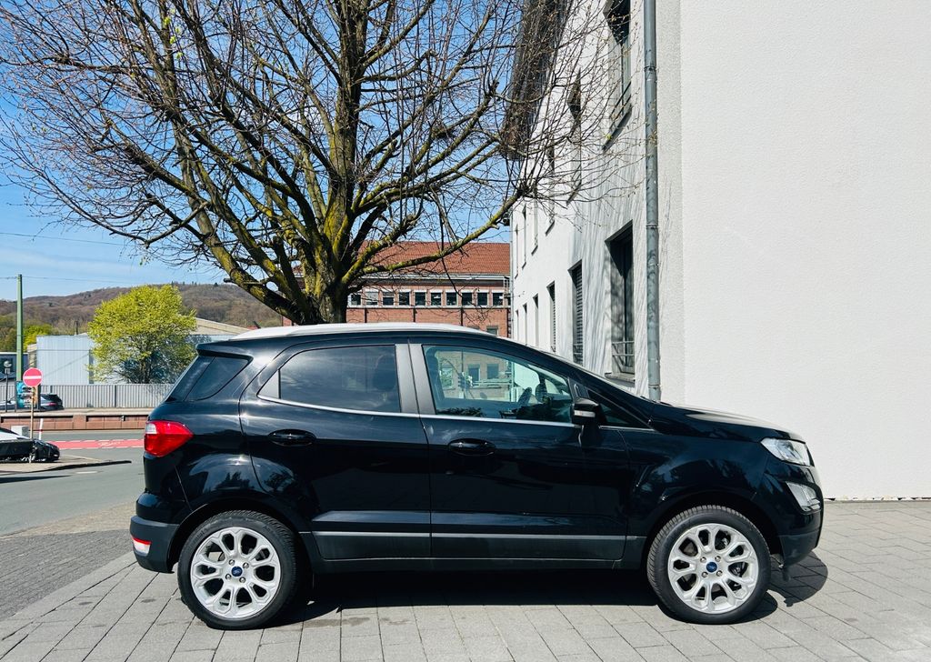 FORD ECOSPORT TITANIUM, Bj. 2020, Euro 6, Audio-Navigationssystem, Klimaautomatik, ABS, ESP, Tempomat, Bordcomputer, beheizbares Multifunktionslederlenkrad, Radio DAB, USB, Bluetooth, 12 V.-Steckdose, Telefonfreisprechanlage, Sprachsteuerung, Apple CarPlay & Android Auto, Ambiente-Beleuchtung vorn (LED), Soundsystem Bang & Olufsen, elektrische Fensterheber vorn und hinten mit Komfortschließung, schlüssellose Zentralverriegelung mit Funkfernbedienung (KeylessGo), Außenspiegel elektrisch verstell- und anklappbar, Fahrersitz- und Lenkrad höhenverstellbar, Isofixaufnahmen für Kindersitze, Teilledersitze mit Lendenwirbelstütze vorn, Sitzheizung, Fahrassistenzsysteme: Berganfahrassistent, Reifendruckkontrollsystem, Start/Stopp-Anlage, Verkehrszeichenerkennung, Außenspiegel mit Blind-Spot-System (Totwinkelassistent), Müdigkeitswarner, Warnung Querverkehr, Notrufassistent, Licht- und Regensensor, Scheinwerferassistent mit Tag-/Nachtsensor, Scheinwerfer im Projektionslinsen-Design, LED-Tagfahrlicht, Nebellampen vorn, Verglasung hinten abgedunkelt, beheizbare Frontscheibe, Dachreling silber, Anhängekupplung abnehmbar, Einparkhilfe vorn und hinten, Rückfahrkamera, Metallic-Lackierung, Allwetterreifen auf LM-Felgen, komplett Scheckheft gepflegt, Nichtraucherfahrzeug aus 2. Hand !14.500,-€ Tel. 0521 141976