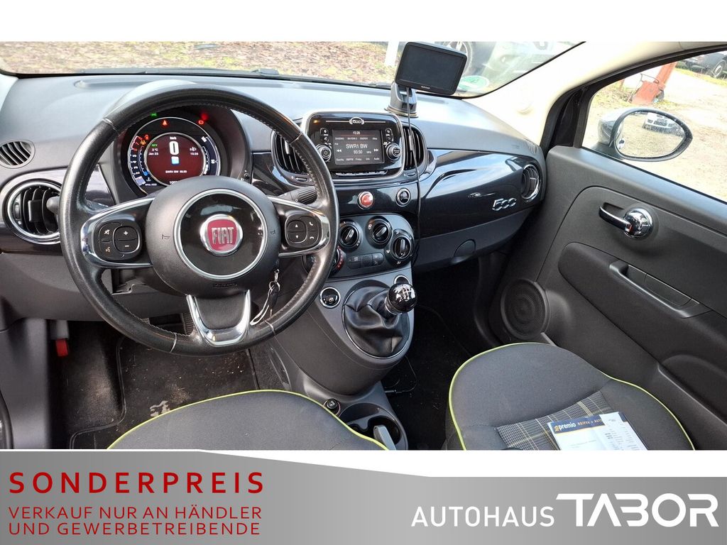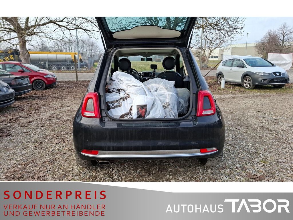 Metallic-Lackierung, Einparkhilfe hinten, Einparkhilfe elektronisch, Control-Display mit TFT-Farbdisplay, Seitenscheiben hinten und Heckscheibe abgedunkelt, Nebelscheinwerfer, Seitenschutzleisten lackiert inkl. Emblem 500, LM-Felgen 6x15 (9-Doppelspeichen), Fußmatten, Raucher-Paket, Chrom-Paket (Auspuffblende verchromt / Fensterzierleisten verchromt), Infotainment-System: UConnect (Touchscreen 5") (Mobile Online Dienste UConnect Live / USB-Schnittstelle), Elektron. Stabilitäts-Programm (ESP / ESC) (Motor-Schleppmoment-Regulator (MSR) / Antriebs-Schlupfregelung (ASR) / Fahrassistenz-System: Berganfahrhilfe), Klimaanlage (Innenraumfilter: Pollenfilter), Fensterheber elektrisch vorn (Zentralverriegelung), Zentralverriegelung mit Fernbedienung (Fernbedienung für Zentralverriegelung / Zentralverriegelung), Außenspiegel elektr. verstell- und heizbar, beide (Außenspiegel Wagenfarbe), Automatische Türverriegelung, Elektr. Bremskraftverteilung, Heckscheibe heizbar, Innenausstattung: Dekoreinlagen Armaturenbrett, lackiert, Karosserie: 3-türig, Kopfstützen hinten, Kühlergrill verchromt, Lenksäule (Lenkrad) höhenverstellbar, Modellpflege, Motor 1,2 Ltr. - 51 kW KAT, Positions-Memory für Beifahrersitz, Reifen-Reparaturkit, Schadstoffarm nach Abgasnorm Euro 6, Sitz vorn links höhenverstellbar, Steckdose (12V-Anschluß) im Armaturenbrett, Steckdose (12V-Anschluß) vorn, Stoßfänger Wagenfarbe, Tankdeckel abschließbar, Tasche an Sitz vorn rechts, Türgriffe außen verchromt, Anti-Blockier-System (ABS), Fahrassistenz-System: Bremsassistent, Wegfahrsperre (elektronisch), Getriebe 5-Gang, Airbag Fahrer-/Beifahrerseite, Beifahrerairbag abschaltbar, Isofix-Aufnahmen für Kindersitz an Rücksitz, Knieairbag Fahrerseite, Kopf-Airbag-System vorn und hinten, Rücksitz geteilt / klappbar, Seitenairbag vorn, Bordcomputer, Panoramadach (Glas), Wärmeschutzverglasung, Elektrische Servolenkung Dual-Drive, Autom. Begleitfunktion der Beleuchtung (Follow me home), Tagfahrlicht, Reifendruck-Kontrollsystem