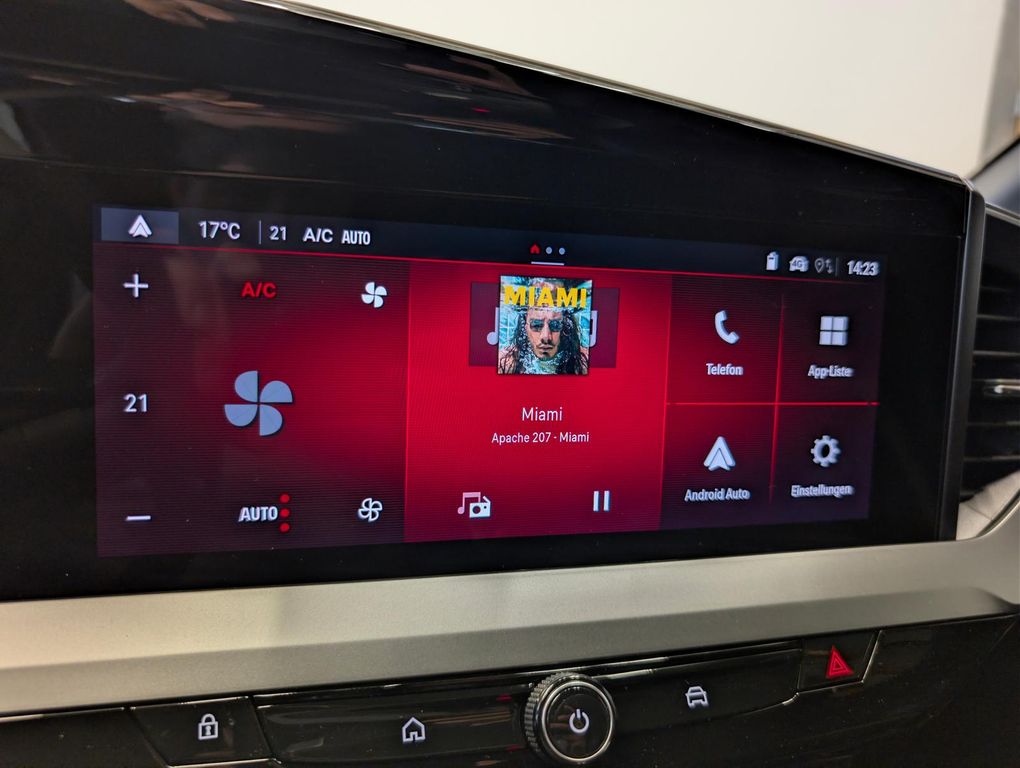 - Tech-Paket 1 (Außenspiegel elektr. verstell- und heizbar, elektr. anklappbar, Voll-LED (IntelliLux), Leuchtweitenregelung automatisch, Blinkleuchten LED in Außenspiegel integriert, Abbiegelicht, Audio-Navigationssystem Multimedia Navi Pro (10" Display), 6 Lautsprecher, Opel Connect, Multifunktionsanzeige mit Touchscreen-Farbdisplay 12 Zoll, Smartphone Schnittstelle (Apple CarPlay & Android Auto), Einparkhilfe vorn und hinten mit Parksensoren seitlich, Geschwindigkeits-Regelanlage (Tempomat) mit Abstandsregelung und Stopp-Funktion, Induktionsladeschale für Smartphone (Wireless Charging), Fahrassistenz-System: Verkehrszeichenerkennung, erweitert (Geschwindigkeits-Regel-/Begrenzeranlage), Fahrassistenz-System: Totwinkel-Assistent )