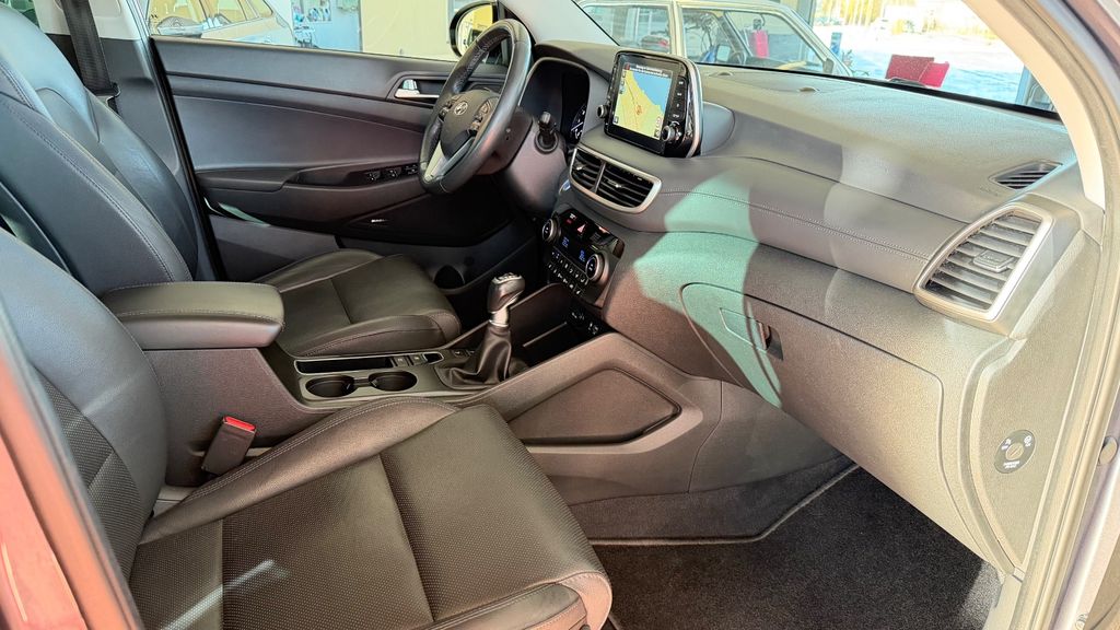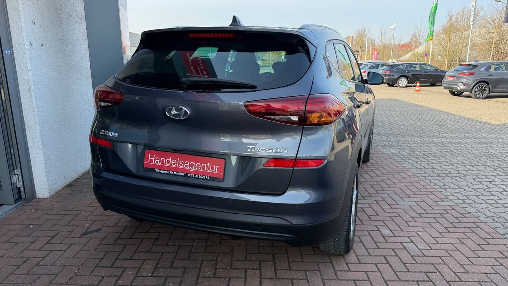 Dieser gepflegte Hyundai TUCSON aus dem Jahr 2019 überzeugt durch seine umfangreiche Ausstattung und moderne Technik. Der SUV mit Frontantrieb wird von einem 132 PS starken 1.6-Liter-Benzinmotor mit 4 Zylindern angetrieben und erfüllt die Euro 6d-TEMP Abgasnorm. Mit nur zwei Vorbesitzern und vollständiger Servicehistorie präsentiert sich dieses Fahrzeug in einem sehr guten Zustand. Die graue Metallic-Lackierung harmoniert perfekt mit dem schwarzen Teilledersitzbezug im Innenraum. Besonders praktisch für den Alltag sind die 2-Zonen-Klimaautomatik, das Navigationssystem sowie die Apple CarPlay und Android Auto Konnektivität.Der TUCSON bietet zahlreiche Sicherheits- und Komfortfeatures wie Spurhalteassistent, Müdigkeitserkennung, Verkehrszeichenerkennung und Fernlichtassistent. Die LED-Scheinwerfer mit adaptivem Kurvenlicht sorgen für optimale Sicht bei Nachtfahrten. Für zusätzlichen Komfort sorgen die Sitzheizung, das schlüssellose Zugangssystem und die Rückfahrkamera mit Parksensoren.