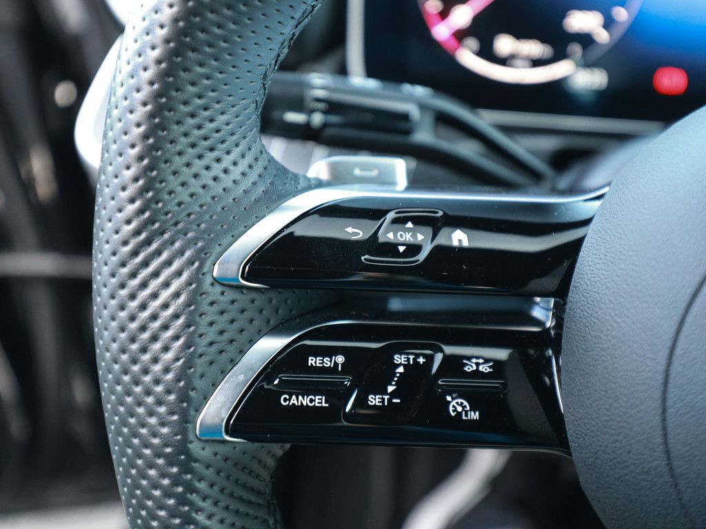 Lenkradheizung, Lederlenkrad, Multifunktionslenkrad, Ambientebeleuchtung, Ambientes Licht, AMG Line Interieur, Bedienelemente am Lenkrad, Dachhimmel schwarz, Getränkehalter.