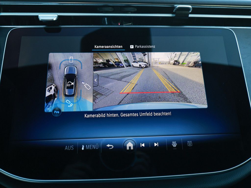 Abstandsregeltempomat (Distronic), Totwinkel-Assistent, 360-Grad-Kamera, Fernlichtassistent, Verkehrszeichenerkennung, Spurhalteassistent.