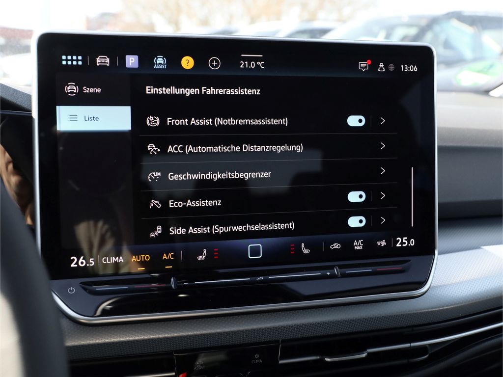 - Assistenten: Totwinkel-Assistent, Müdigkeitserkennung, Verkehrszeichenerkennung, Regensensor, Fernlichtassistent, Lichtsensor, Notbremsassistent, Berganfahrassistent, Spurhalteassistent, Spurwechselassistent, Abstandsregeltempomat, Ausparkassistent, Abstands-/Kollisionswarner