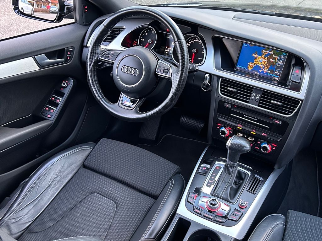 Audi music interface, Ausstattungs-Paket: S line Sport / Plus, Außenspiegel elektr. verstell-, heiz- und anklappbar, Business-Paket, Einparkhilfe vorn und hinten, optisch (APS Plus), Fahrassistenz-System: Spurwechselassistent (Side Assist), Fondsitzanlage (3 Sitzplätze), Innenspiegel mit Abblendautomatik, Isofix-Aufnahmen für Kindersitz an Beifahrersitz, Komfort-Klimaautomatik 3-Zonen, Multi-Media-Interface MMI Navigation Plus, Reserverad als Notrad, Sitzbezug / Polsterung: Leder / Stoff Sprint mit Logo-Prägung in Vordersitzlehnen, Sonderlackierung Brilliant-Schwarz, Sport-Fahrwerk