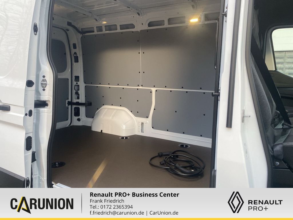 Ablagefächer auf Armaturentafel (geschlossen), Airbag Beifahrerseite, Frontscheibe heizbar, Handschuhfach Schubfach (Easy-Life), Innenbeleuchtung LED, Kamerasystem Renault Rear View Assist, Multimediasystem Open R-Link mit Navigationssystem. Google Maps und Google Services (Touchscreen 10"), Seitenairbag vorn. Fahrerseite, Sitze im Fahrerhaus: Beifahrerdoppelsitz multifunktional mit Staufach und Mobile-Office, Sitze im Fahrerhaus: Fahrer- und Beifahrersitz heizbar, Ablagefächer auf Armaturentafel (offen), Airbag Fahrerseite, Anti-Blockier-System (ABS), Antriebs-Schlupfregelung (ASR), Antriebsart: Frontantrieb, Außenspiegel elektr. verstell- und heizbar, Dachantenne, Einparkhilfe hinten, Elektromotor 105 kW, Elektron. Stabilitäts-Programm (ESP), Elektron. Traktionskontrolle (Extended Grip-Control), Fahrassistenz-System: Berganfahr-Assistent (HSA), Fahrassistenz-System: Intelligente Geschwindigkeitsanpassung (ISA), Fahrassistenz-System: Müdigkeitserkennung, Fahrassistenz-System: Notbrems-Assistent (Aktiv) mit Fußgänger- und Fahrraderkennung, Fahrassistenz-System: Seitenwind-Assistent, Fahrassistenz-System: Sicherheitssystem mit automatischem Notruf (ERA GLONASS / eCall), Fahrassistenz-System: Spurhalteassistent, Fensterheber elektrisch vorn, Fzg. ohne Schiebetür links im Lade-/Fahrgastraum, Geschwindigkeits-Regelanlage (Tempomat) inkl. Geschwindigkeits-Begrenzeranlage, Getriebe für Elektrofahrzeug, Heckflügeltüren ohne Verglasung, HV-Batterie 87 kWh, Innenausstattung: Luftdüsen Chrom-Optik, Karosserie/Aufbau: Kasten Hochraum Standard, Klimaanlage, Innenraumfilter: Pollenfilter, Kombiinstrument digital (7.0 Zoll), Ladekabel mit Typ 2-Stecker (20 A. Mode 3), Laderaumtrennwand, Licht- und Regensensor, Parkbremse manuell, Radkappen, Radstand 3585 mm, Reifen-Reparaturset, Reifendruck-Kontrollsystem (Aktiv), Schiebetür Lade-/Fahrgastraum rechts, Sitzbezug / Polsterung: Stoff, Sitze im Fahrerhaus: Beifahrerdoppelsitz, Sitze im Fahrerhaus: Fahrersitz 6-fach verstellbar, Stahlfelgen 7x16, Steckdose (12V-Anschluß) in Mittelkonsole, Tagfahrlicht LED, Verzurrösen Laderaumboden, Vorbereitung für Alkohol-Wegfahrsperre, Zentralverriegelung mit Fernbedienung, Zierleiste unterhalb Kühlergrill (schwarz), Zul. Gesamtgewicht 3.50 t, Standardlackierung ohne Aufpreis, Kältemittel, Zentralverrieglung, 16-Zoll Stahlfelgen, elektrische Fensterheber vorne, Außenspiegel elektrisch einstell- und beheizbar, Fahrerairbag, Stoffpolsterung Advance (dunkelgrau meliert mit grauen Nähte, 12-V-Anschluss im Cockpit, Reifendruckkontrolle (aktiv), Spurhalteassistent, Radabdeckung "Vango", Reifenreparatur-Set, Klimaanlage manuell, Verzurrösen im Laderaumboden (8 in L2/10 in L3 /12 in L4), Trennwand geschlossen, aktiver Notbremsassistent (Stadt/Vorstadt) mit Fußgänger-/Ra, offenes Handschuhfach, zwei 3-Tasten-Schlüssel (1x klappbar und 1x fix), Einzelbereifung, ohne Trittstufe am Heck, ohne seitliche Schiebetür links ohne Fenster, seitliche Schiebetür rechts ohne Fenster, ohne Laderaumseitenverkleidung, Fahrersitz 6-fach verstellbar, Beifahrerdoppelsitzbank, Hecktüren Öffnungswinkle 180 ohne Fenster, offene Ablagefächer im Armaturenbrett, Open R-Link mit 10-Zoll Display (ohne Navigation), intelligenter Geschwindigkeitsassistenz