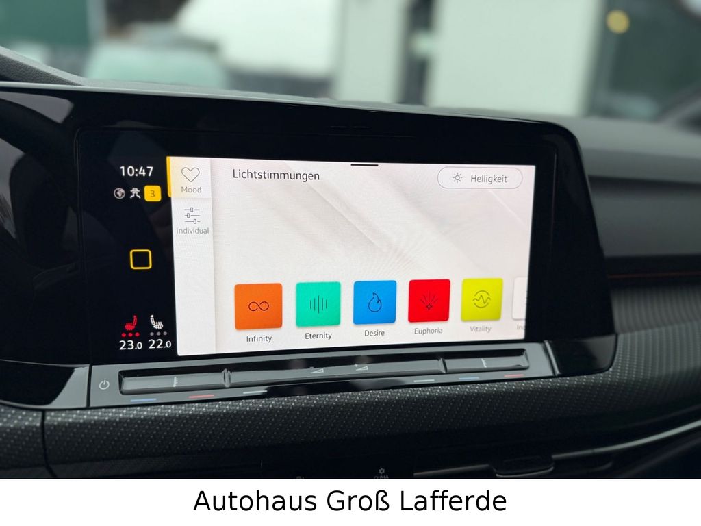 3-Punkt-Sicherheitsgurt hinten mitte, Airbag Fahrer-/Beifahrerseite, Beifahrerairbag abschaltbar, Ambiente-Beleuchtung (30 Farben), Antennen-Diversity, Ausstattung R-Line, Automatische Fahrlichtschaltung (ALS) mit Leaving Home / Coming-Home-Lichtfunktion, Außenspiegel elektr. verstell- und heizbar, mit Memory, Außenspiegel mit Umfeldleuchte und Projektionsfunktion, Bordspannung 48V Technologie, Bremsassistent, Dachhimmel Stoff, schwarz, Dachspoiler, Digital Cockpit (Instrumentenanzeige digital), Einparkhilfe vorn und hinten, Elektron. Differentialsperre (XDS), Elektron. Stabilitäts-Programm (ESP) mit Bremskraftverstärker elektro-mechanisch, Fahrassistenz-System: Abbiegebremsfunktion und Ausweichunterstützung, Fahrassistenz-System: Fahrprofilauswahl, Fahrassistenz-System: Müdigkeitserkennung, Fahrassistenz-System: Spurhalteassistent (Lane Assist), Fahrassistenz-System: Umfeldbeobachtungssystem (Front assist) mit City-Notbremsfunktion, Fensterheber elektrisch vorn und hinten, Frontscheibe Verbundglas getönt, Fußgänger-Schutzsystem (passiv), Fußmatten Textil, Fußraumbeleuchtung vorn LED (Farbe einstellbar), Geschwindigkeits-Begrenzeranlage, Heckleuchten LED, Innenausstattung: Dekoreinlagen Carbon Grey, Isofix-Aufnahmen für Kindersitz an Beifahrersitz und Rücksitz (inkl. i-Size-Kindersitze), Karosserie: 5-türig, Kopfstützen hinten (3-fach), Lendenwirbelstützen vorn, Lenksäule (Lenkrad) mechan. verstellbar, Höhen-/Längsverstellung, Leseleuchten vorn und hinten LED, Mild-Hybrid 110 kW (Motor 1,5 Ltr. - 110 kW eTSI ACT), Mild-Hybrid-Technologie, Mittelarmlehne vorn höhen-/längsverstellbar, Mobile Online Dienste Vorbereitung We Connect und We Connect Plus, Multimedia-Schnittstelle 2 x USB (Typ C) vorn und 2 x USB-Ladeanschluß (Typ C) Mittelkonsole hinten (45 W), Nebelschlussleuchte, Nichtraucher-Paket, Notrufsystem, Otto-Partikelfilter (OPF), Parkbremse elektrisch mit Auto-Hold-Funktion, Pedale Edelstahl, Progressivlenkung, Radioempfang digital (DAB+), Reifen-Reparaturkit (Tire Mobility Set), Reifenkontroll-Anzeige, Rücksitzlehne geteilt mit Mittelarmlehne, Schadstoffarm nach Abgasnorm Euro 6d, Seitenairbag vorn mit Kopf-Airbag-Einheit, Service-System: Intelligente Fahrzeugvernetzung (Car2X), Sitzbezug / Polsterung: Stoff Sardegna / Mikrovlies ArtVelours, Sitze vorn höhenverstellbar, Sitze: Top-Sportsitze vorn, Sonnenblenden mit Spiegel (beleuchtet), Sport-Fahrwerk, Stabilisator vorn, Start/Stop-Anlage, Steckdose 12V im Koffer-/Laderaum, Stoßfänger R-Line, Türgriffe außen Wagenfarbe, Türgriffschalen außen beleuchtet, Verbandkasten und Warndreieck, Warnanlage für Sicherheitsgurte vorn und hinten