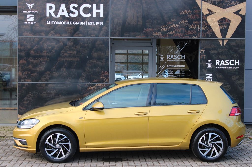Sonderausstattung:Fahrassistenz-System: Autom. Distanzregelung (ACC) mit Umfeldbeobachtungssystem (Front assist), Licht- und Sicht-Paket 1, Raucher-Paket, Sonderlackierung Kurkuma-Gelb Metallic, Spiegel-Paket, Volkswagen Media Control und App-Connect / MirrorLink uvm.
