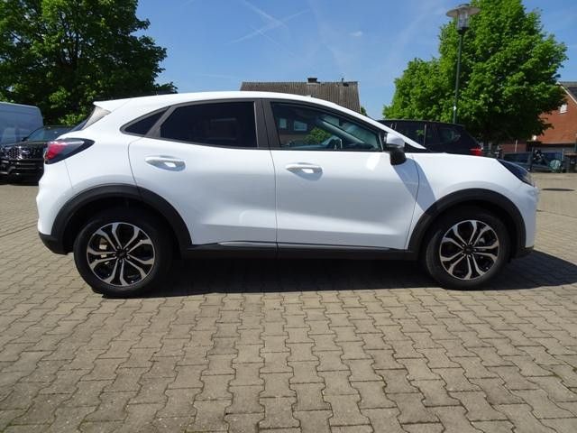 6 Lautsprecher, Ambiente-Beleuchtung vorn (LED), Antischlupfregelung (ASR), Audio-Navigationssystem Ford Cloud-Navigationssystem, Audiobedienung am Lenkrad, Außenspiegel elektr. verstell- und heizbar, Blinkleuchte in Außenspiegel integriert, Body-Styling-Paket, Bordcomputer, Dachhimmel Stoff, Eco-Anzeige für verbrauchsoptimiertes Fahren (EcoCoach), Einparkhilfe hinten, Fahrassistenz-System: Berganfahr-Assistent (Hill-Holder), Fahrassistenz-System: Falschfahrer-Warnfunktion, Fahrassistenz-System: Fernlichtassistent (Scheinwerfer mit Abblendautomatik), Fahrassistenz-System: Notbrems-Assistent, Fahrassistenz-System: Post-Collision-System, Fahrassistenz-System: Pre-Collision-System, Fahrassistenz-System: Spurhalteassistent mit Müdigkeitserkennungs-Sensor, Fahrassistenz-System: Verkehrsschildassistent, Farbdisplay (12 Zoll), Fensterheber elektrisch vorn + hinten mit Komfortschließung, Fußmatten Teppich, Getriebe 6-Gang - Typ: 6MX65, Heckleuchten LED, Innenraumfilter: Staub- und Pollenfilter, Innenspiegel mit Abblendautomatik, Intelligent Protection System (IPS), Intelligenter Geschwindigkeits-Begrenzer, Isofix-Aufnahmen für Kindersitz, Karosserie: 5-türig, Klimaautomatik 2-Zonen, Kopfstützen hinten mechan. verstellbar (3 Stück), Laderaumboden variabel (Ford Megabox), Lendenwirbelstütze Sitz vorn links, Lenksäule (Lenkrad) höhen-/längsverstellbar, LM-Felgen, Mild-Hybrid 92 kW (Motor 1,0 Ltr. - 92 kW EcoBoost), Modellpflege, My Key (2. Fahrzeugschlüssel programmierbar), Nebelscheinwerfer LED, Otto-Partikelfilter (OPF), Radioempfang digital (DAB), Radstand 2588 mm, Reifen-Reparaturkit, Reifendruck-Kontrollsystem, Rückfahrkamera, Rücksitzlehne geteilt/klappbar (60:40), Schadstoffarm nach Abgasnorm Euro 6d, Scheinwerfer LED, Scheinwerfer-Assistent mit Tag-/Nachtsensor, Sitz vorn links höhenverstellbar, Sonnenblende links mit Spiegel (beleuchtet), Sonnenblende rechts mit Spiegel (beleuchtet), Sportsitze vorn, Standard Variante, Start/Stop-Anlage, Türgriffe außen Wagenfarbe, EU-Tageszulassung