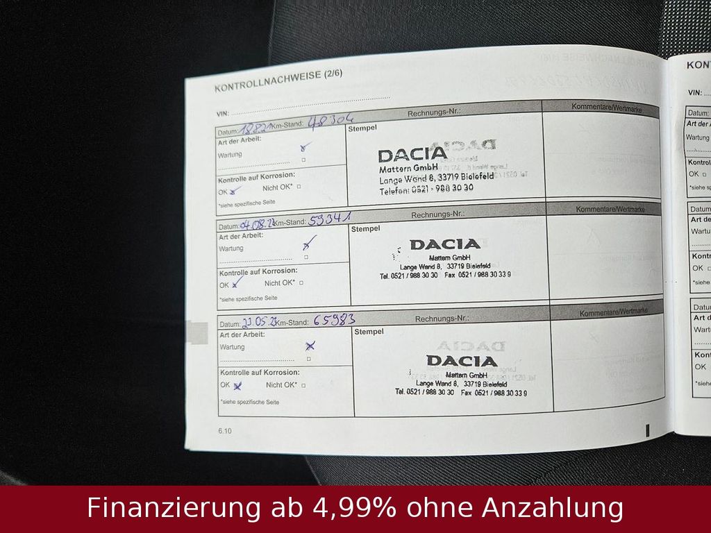 TüV neuInspektion neu Scheckheftgepflegt bei Dacia Vertragswerkstatt