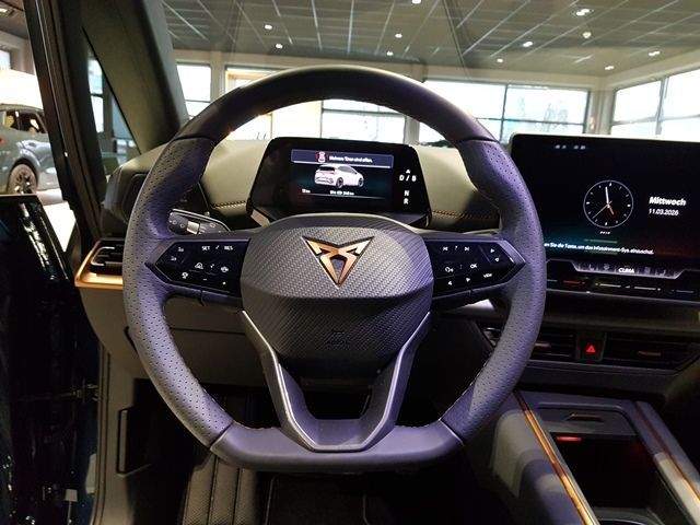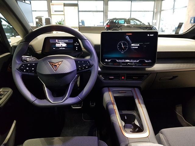 AR Head-up-Display - Augmented Reality Head-up-Display projiziert Fahrdaten in das Sichtfeld des Fahrers, Charge 230V Netzkabel für Haushaltssteckdose (Ladekabel Mode 2, Typ 2 / 10A), Heat pump - Wärmepumpe zur effizienten Klimatisierung und Reichweitenoptimierung, Lackierung: Metallic, Navigationssystem mit 12,9"" Display Vorbereitung für die Aktivierung des Dienstepackets CUPRA CONNECT PLUS mit einer kostenlosen Vertragslaufzeit von 10 Jahren, Paket: Below Zero Pack - Vordersitze beheizbar, Paket: Cargo Pack - Netzkabel für Haushaltssteckdose (Ladekabel Mode 2, Typ 2 / 10A) - Variabler Gepäckraumboden, Paket: Pilot M Pack - Fernlichtassistent - Rückfahrkamera, Paket: Protect Pack - Diebstahl-Warnanlage inkl. Innenraumüberwachung, Back-up-Horn, Abschleppschutz und Safe-Sicherung - Pre Crash Assist, Paket: Tech M Pack - ÄußereTürgriffmulden, vorne beleuchtet - Kessy Advanced, Schlüsselloses Schließ- und Startsystem mit Safesicherung - Wireless Charger, Privacy Glass: Seitenscheiben ab 2. Sitzreihe und Heckscheibe dunkel getönt, Smart Ambient Light - Umlaufende Ambientebeleuchtung im Innenraum - Welcome Zeremonie - Zusammenspiel mit Assistenzsystemen und Drive Profile, Vorbereitet für die Aktivierung des Dienstepakets CUPRA CONNECT Plus mit Online-Infotainment und einer Vertragslaufzeit von 3 Jahren, Airbag: Airbag für Fahrer und Beifahrer, Airbag: Beifahrerairbag-Deaktivierung, Airbag: Kopfairbag-System, vorne/hinten, Ambientebeleuch. in der Türverkleidung, Ausweichunterstützung mit Abbiegeassiste, Automatische Distanzregelung ACC, Außenspiegel auf F.u.B., Außenspiegel el. einstel., anklap., beh., Außenspiegelgehäuße in Liquid Grey, Bremsleuchte, dritte, C-Säule mit CUPRA Designelement, CCS-Ladedose, CUPRA Drive Profile, CUPRA Schriftzug auf Heckklappe, CUPRA Seitenschweller in Luquid Grey, CUPRA e-Sound, Dachhimmel in Black, Dekorelementen, Einparkhilfe vorne und hinten, Elektronische Parkbremse inkl. Auto-Hold, Elektronische Stabilisierungskontrolle, Fensterheber el. v. h., mit Einklemmsch., Fußraumbeleuchtung, Gepäckraumbeleuchtung, Geschwindigkeitsbegrenzer, Getriebe: 1 Gang Automatik, Heckscheibenwischer, Heckspoiler in Wagenfarbe, Heckstoßfänger u. Diffusor in Wagenfarbe, Herstellergarantie 5 Jahre bis 150000km, Hochvoltbatteriegarantie 8Jahre/160000km, ISOFIX-Kindersitz-Sicherungssystem, Innenspiegel automatisch abblendend, Keyless Go (Motor Start/Stop Knopf), Klima: Climatronic mit elektronisch., Kopfstützen, 2 vorne, Kopfstützen, 3 hinten, Ladekabel Mode 3 Typ 2, 16 A, Lenkrad: CUPRA Supersport-Multif., Licht: Voll-Scheinwerfer, Mittelarmlehne vorne, Mittelkonsole mit integriertem Staufach, Müdigkeits- und Aufmerksamkeitserkennung, Notbremsassistent ""Front Assist"" mit Fuß, Notruf-Service, Progressivlenkung, Radio: Radio- und Multimediasysteme, Regensensor, Reifenkontrollanzeige, Räder: LM 7,5J x 19"" , Typhoon B/S, Scheibenwischerintervallschaltung, Sicherheitsgurte -vorne und hinten, Sitze: 3 Rücksitze, Rücksitzlehne, Sitze: CUPRA Sportschalensitze v., Sitze: Fahrersitz mit Höheneinstellung, Sonnenblenden mit Make-up Spiegel, beleu, Sportpedalerie in Aluminiumoptik, Spurhalteassistent, Steckdose 12-V im Gepäckraum, Stoßfänger vorne in Wagenfarbe, Ultraschall-Einparkhilfe vorne u.hinten, Umfeldbeobachtungssystem ""Front Assist"", Verkehrszeichenerkennung, Wegfahrsperre, elektronisch, Wärmeschutzverglasung, Überführung, Ââ¢->Sofortige Probefahrt