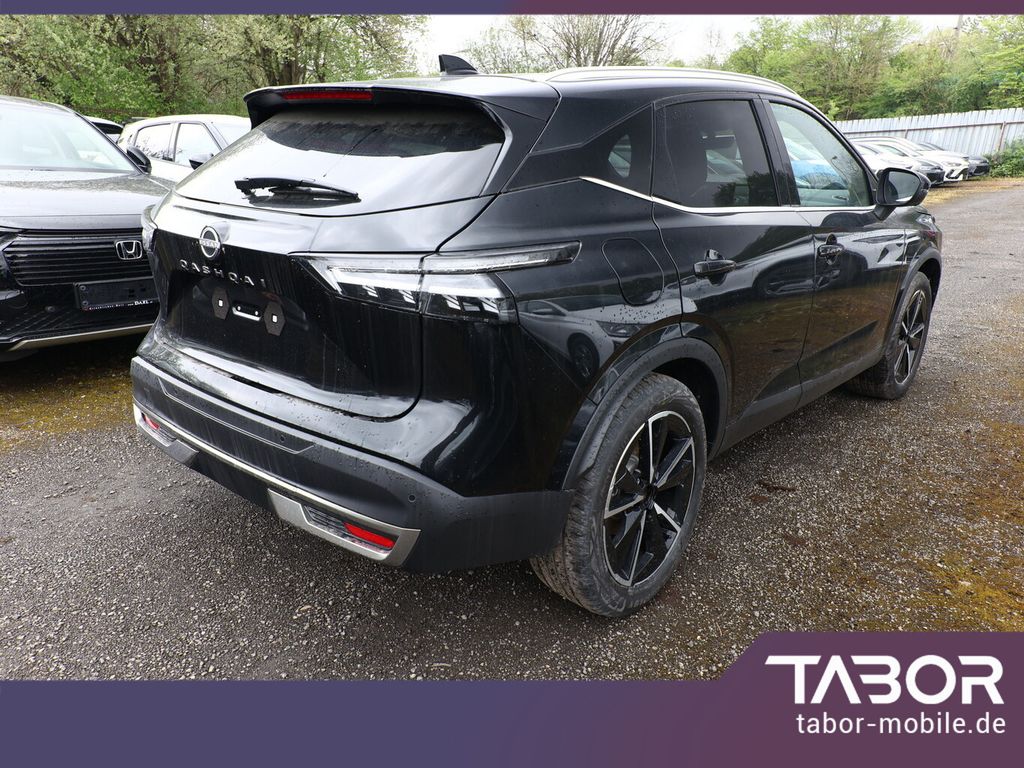 Panorama-Glasdach, Dachreling, Einparkhilfe vorne und hinten, Fahrassistenz-System: Intelligentes Notbremssystem mit Fußgänger- und Radfahrererkennung, Innenspiegel frameless mit Abblendautomatik, LM-Felgen 19 Zoll, Reifen 235/50 R19, Sitzpolsterung in Kunstleder, Schwarz, Smartphone kabellose Schnittstelle (Apple CarPlay & Android Auto), Business-Paket (Induktionsladeschale für Smartphone / Heckklappe/-Deckel elektr. betätigt (Öffnung, sensorgesteuert)), Komfort-Paket (1) (Außenspiegel elektr. verstellbar, mit Memoryfunktion rechts / Lendenwirbelstütze Sitz vorn rechts / Sitz vorn links elektr. verstellbar (mit Memory) / Head-up-Display / Heckklappe/-Deckel elektr. betätigt (Öffnung, sensorgesteuert) / Außenspiegel elektr. verstellbar, mit Memoryfunktion links / Außenspiegel mit autom. Absenkfunktion), Schließ-/Startsystem intelligent key (Keyless-Entry / Start-Stop-Knopf), Lenkrad (Leder) mit Multifunktion (Audiobedienung am Lenkrad), Winter-Paket (Lenkrad heizbar / Sitzheizung vorn / Frontscheibe heizbar), 3. Bremsleuchte, Ambiente-Beleuchtung, Dachantenne im Haifischflossen-Design, Geschwindigkeits-Begrenzeranlage, Innenspiegel mit Abblendautomatik, Instrumentenanzeige TFT-Farbdisplay (12,3 Zoll), Karosserie: 5-türig, Lendenwirbelstütze Sitz vorn links, elektr. verstellbar, Lendenwirbelstütze Sitz vorn rechts, elektr. verstellbar, Mild-Hybrid 116 kW (Motor 1,3 Ltr. - 116 kW DIG-T MHEV), Mittelarmlehne hinten mit Getränkehalter, Notbrems-Warnblinkautomatik, Parkbremse elektrisch, Radstand 2666 mm, Schalt-/Wählhebelgriff Leder, Sitz vorn links höhenverstellbar, Sitz vorn rechts höhenverstellbar, Sonnenblenden mit Spiegel (beleuchtet), Touchscreen-Farbdisplay (12,3 Zoll), Navigationssystem, USB-Anschluss im Fond, USB-Schnittstelle, Anti-Blockier-System (ABS), Antriebsart: Allradantrieb, Elektron. Stabilitäts-Programm (ESP), Getriebe Automatik stufenlos - X-Tronic-CVT, Klimaautomatik 2-Zonen, Airbag Fahrer-/Beifahrerseite, Kopf-Airbag-System, Rücksitz geteilt/klappbar, Seitenairbag vorn mitte (Center-Airbag), Fahrmodusschalter, Around View Monitor (360° Umgebungsansicht), Auto-Hold-Funktion, Fahrassistenz-System: Auffahrwarnsystem (Forward Collision Warning, FCW), Fahrassistenz-System: