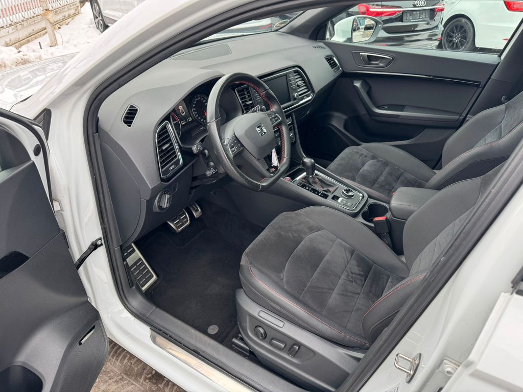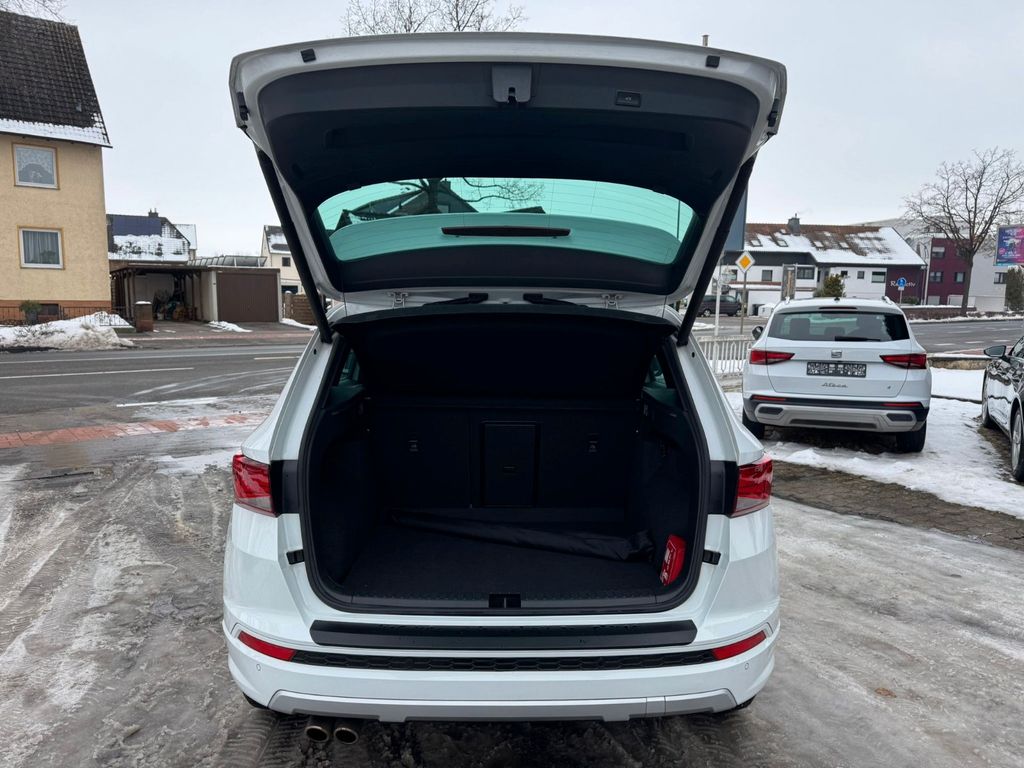 3. Bremsleuchte, Airbag Beifahrerseite abschaltbar, Airbag Fahrer-/Beifahrerseite, Alcantara-Paket, Antriebs-Schlupfregelung (ASR), Antriebsart: Allradantrieb, Außenspiegel elektr. verstell-, heiz- und anklappbar mit Spiegelabsenkung und Welcome Light, Außenspiegel elektr. verstell-, heiz- und anklappbar, beide, Außenspiegel lackiert, Außenspiegel und Türgriffe außen in Wagenfarbe, Blinkleuchte in Außenspiegel integriert, Bordcomputer, Bremsassistent, Chromleisten an Seitenfenstern, Dachhimmel schwarz, Dachreling, Doppeltonhorn, Fahrassistenz-System: Berganfahr-Assistent (Hill-Holder), Fahrassistenz-System: Fahrprofilauswahl (SEAT Drive Profile), Fahrassistenz-System: Müdigkeitserkennung, Fahrassistenz-System: Umfeldbeobachtungssystem (Front assist) mit City-Notbremsfunktion, Fensterheber elektrisch vorn + hinten, Fußraumbeleuchtung vorn, Gepäckraumabdeckung / Rollo, Handschuhfach beleuchtet, Heckleuchten LED, Innenausstattung: Chrom-Applikationen, Innenraumlicht-Paket LED, Isofix-Aufnahmen für Kindersitz, Karosserie: 5-türig, Klimaanlage Climatronic 2-Zonen, Knieairbag Fahrerseite, Komfortsitze, Kopf-Airbag-System, Kopfstützen hinten (3-fach), Kopfstützen vorn, Lendenwirbelstütze Sitz vorn links, verstellbar, Lendenwirbelstütze Sitz vorn rechts, verstellbar, Lendenwirbelstütze verstellbar, Lenkrad (Sport/Leder) mit Multifunktion, LM-Felgen, Mittelarmlehne hinten, Mittelkonsole vorn mit Mittelarmlehne, Becherhalter, Ablagebox und Luftdüsen hinten, Motor 2,0 Ltr. - 140 kW TSI, Parkbremse elektrisch, Radstand 2630 mm, Reifenkontroll-Anzeige, Rücksitzlehne klappbar, Rücksitzlehnen umklappbar mit Fernentriegelung im Kofferraum, Schadstoffarm nach Abgasnorm Euro 6, Schalt-/Wählhebelgriff Leder, Scheinwerfer LED, Seitenairbag, Seitenscheiben hinten und Heckscheibe abgedunkelt, Sitz vorn links höhenverstellbar, Sitz vorn rechts höhenverstellbar, Start/Stop-Anlage, Stau-/Ablagefach unter Sitz vorn links, Steckdose (12V-Anschluß) vorn, Stoßfänger FR-Design, Verglasung getönt, Verzurrösen Koffer-/Laderaum, Wärmeschutzverglasung