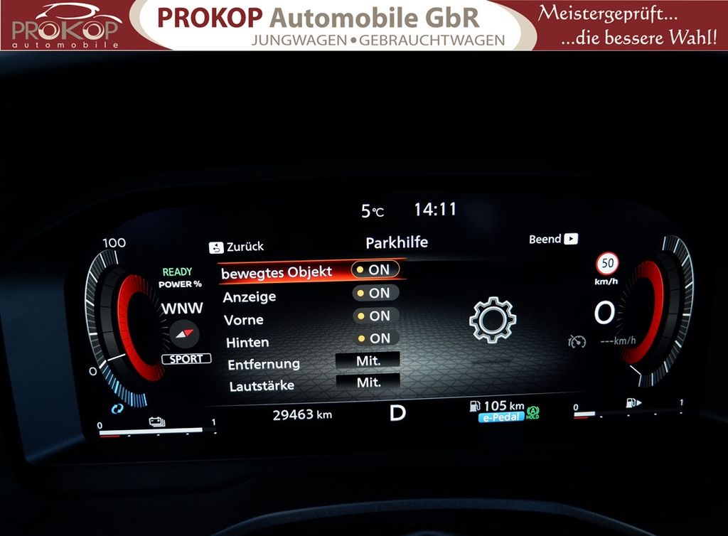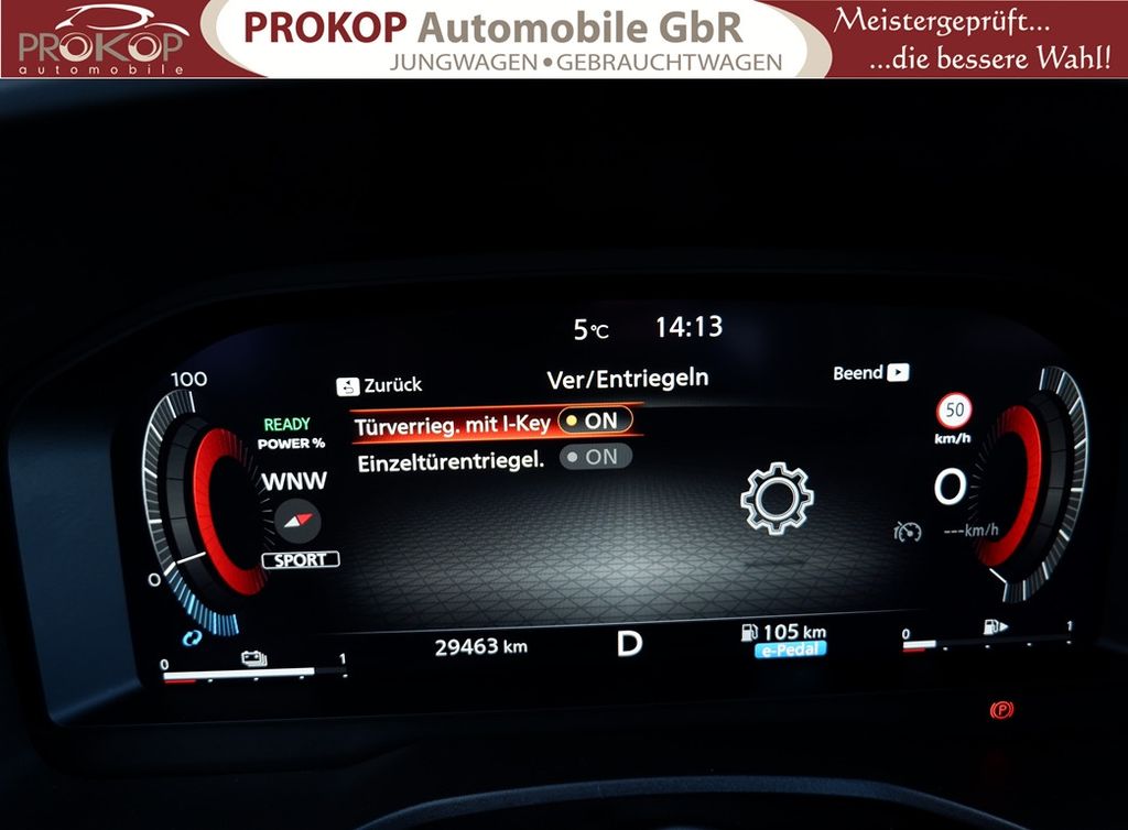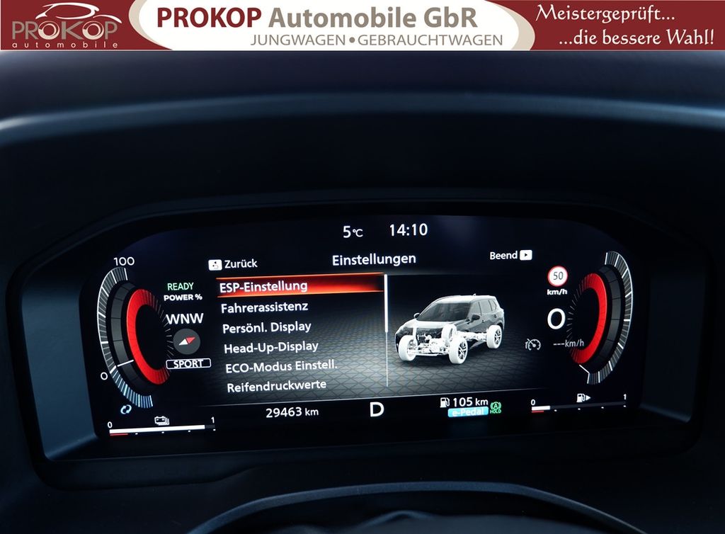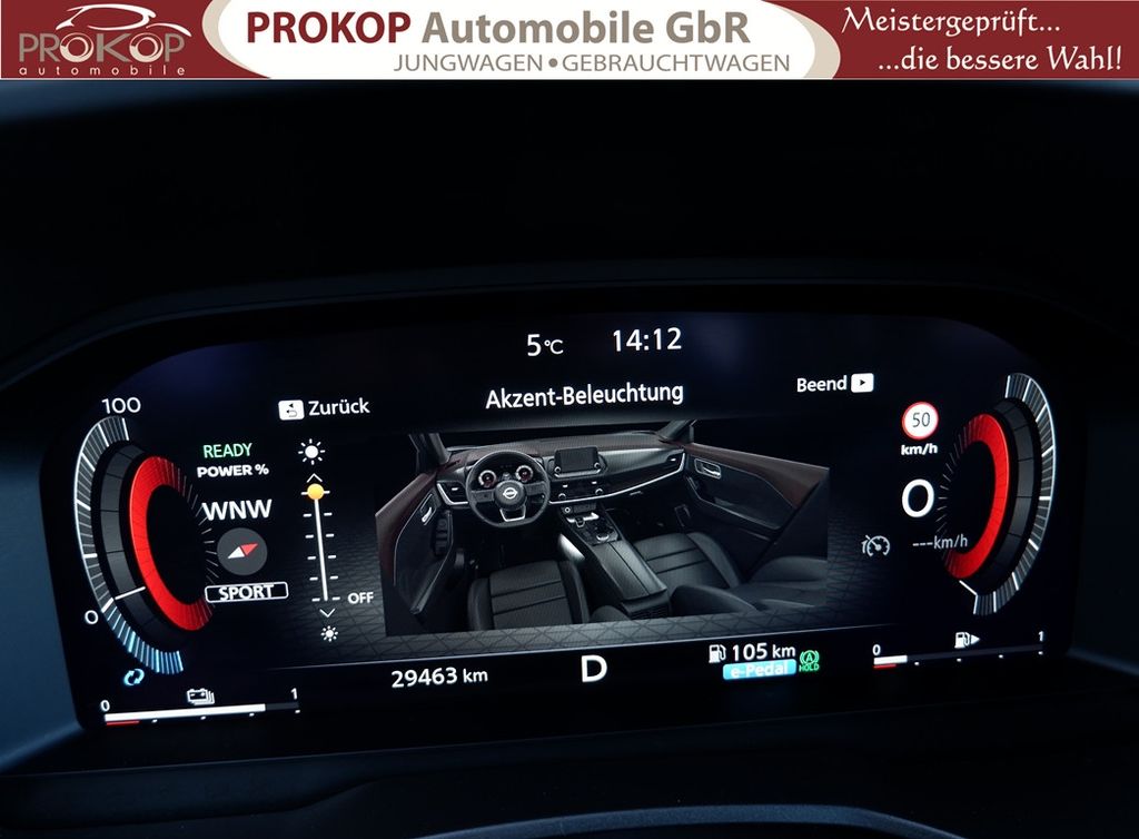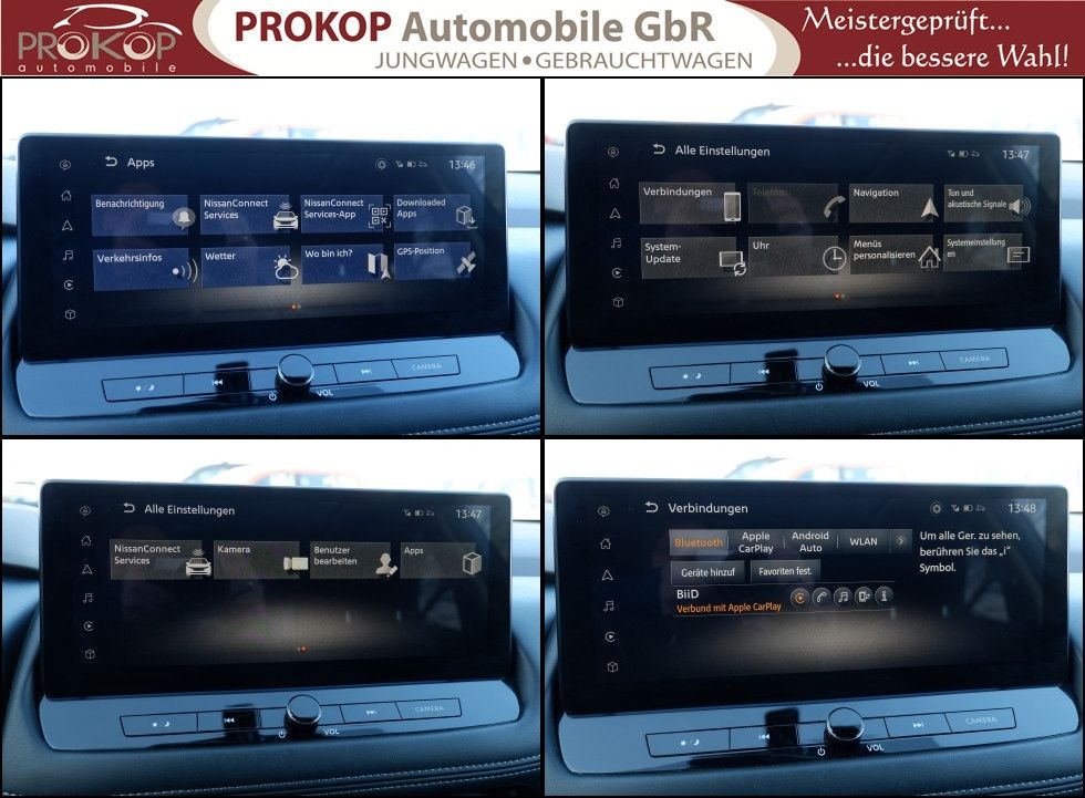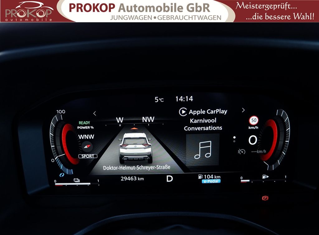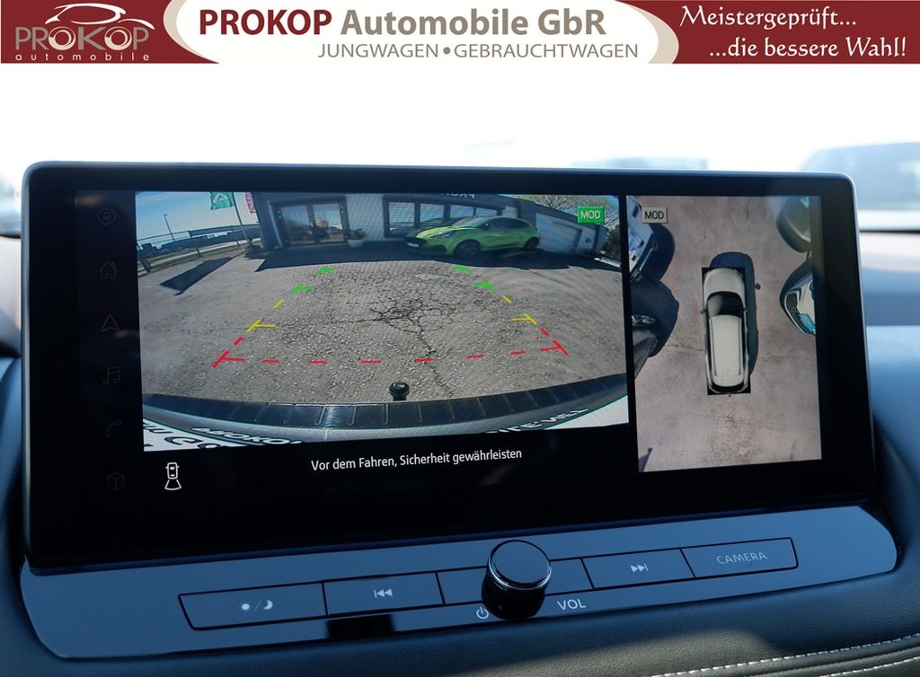 Radioempfang digital (DAB), Sprachbediensystem Spracherkennung, Freisprechanlage Bluetooth, Touchscreen-Farbdisplay (12,3 Zoll), Bluetooth-Schnittstelle, Service-System: Nissan Connect Services, Service-System: Google Services, Service-System: Amazon Alexa, Smartphone Schnittstelle (Apple CarPlay & Android Auto), Navigationssystem, Around View Monitor (360° Umgebungsansicht), Kamerasystem Around View