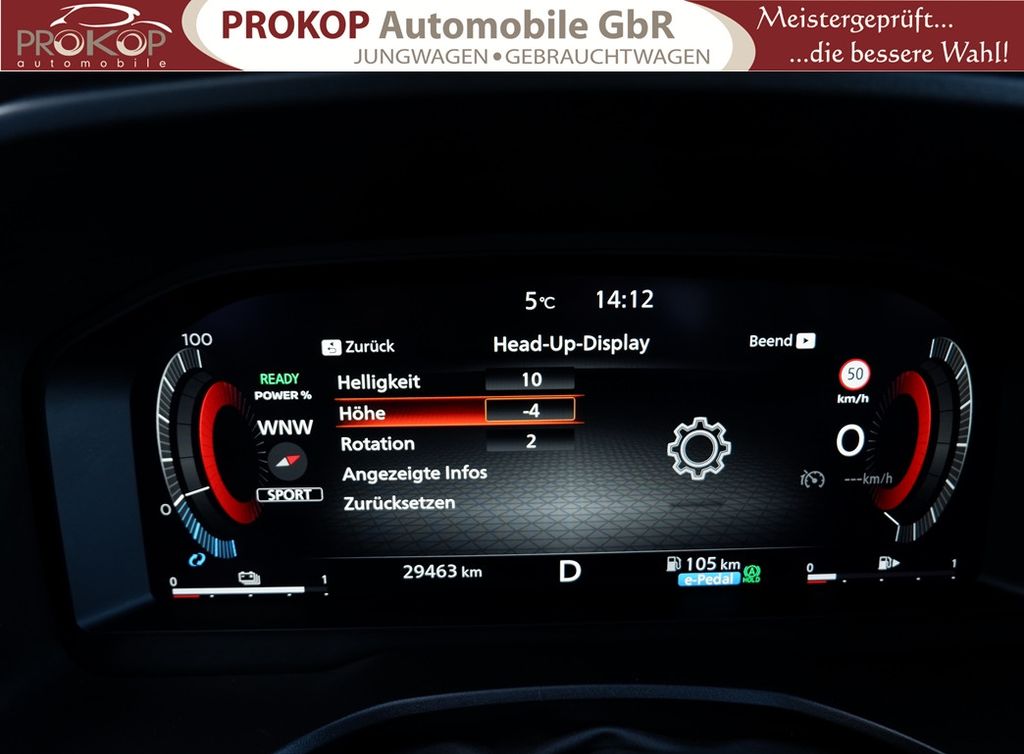 Ablagetasche an Vordersitzlehnen, Airbag Fahrer-/Beifahrerseite, Ambiente-Beleuchtung Mittelkonsole, Ausstattungs-Paket: Nissan Connect Navigationssystem, Auto-Hold-Funktion, Außenspiegel elektr. anklappbar, Außenspiegel elektr. verstell- und heizbar, Dachantenne im Haifischflossen-Design, Dachreling, Einparkhilfe hinten, Einparkhilfe vorn, Elektr. Bremskraftverteilung (EBD), Elektromotor 150 kW (Hybridantrieb), Elektromotor mit Range Extender 150 kW (Motor 1,5 Ltr. - 116 kW), Fahrassistenz-System: aktiver Spurhalteassistent, mit korrigierendem Bremseingriff, Fahrassistenz-System: Auffahrwarnsystem (Forward Collision Warning, FCW), Fahrassistenz-System: Autonomer Notbrems-Assistent, Fahrassistenz-System: Berganfahr-Assistent, Fahrassistenz-System: Fernlichtassistent, Fahrassistenz-System: Müdigkeitserkennungs-Sensor, Fahrassistenz-System: Querverkehrs-Assistent Heck (Rear Cross Traffic Alert, RCTA), Fahrassistenz-System: Sicherheitssystem ERA GLONASS mit automatischem Notruf, Fahrassistenz-System: Totwinkel-Assistent, Fahrassistenz-System: Verkehrszeichenerkennung, Fahrmodusschalter, Familien-Paket, Fensterheber elektrisch vorn + hinten, Gepäck-/Laderaum-Unterteilung (Flexi-Board), Geschwindigkeits-Regelanlage (Tempomat) mit Abstandsregelung, Handschuhfach beleuchtet, Heckleuchten LED, Innenspiegel mit Abblendautomatik, Instrumentenanzeige TFT-Farbdisplay (12,3 Zoll), Isofix-Aufnahmen für Kindersitz, Karosserie: 5-türig, Keyless-Entry, Kofferraumbeleuchtung, Kopf-Airbag-System, Lendenwirbelstütze Sitz vorn links, elektr. verstellbar, Lendenwirbelstütze Sitz vorn rechts, Lenksäule (Lenkrad) höhen-/längsverstellbar, Leseleuchten vorn und hinten, Licht- und Regensensor, Mittelarmlehne hinten mit Getränkehalter, Mittelkonsole mit Armlehne und Staufach, Notbrems-Warnblinkautomatik, Otto-Partikelfilter (OPF), Parkbremse elektrisch, Radstand 2705 mm, Reifendruck-Kontrollsystem, Rückfahrkamera, Rücksitzbank verschiebbar, Rücksitzlehne geteilt (40:20:40), Schadstoffarm nach Abgasnorm Euro 6d, Seitenairbag vorn, Seitenairbag vorn mitte (Center-Airbag), Sitz vorn links höhenverstellbar, Sitz vorn rechts höhenverstellbar, Sitzbezug / Polsterung: Stoff, Sonnenblenden mit Spiegel (beleuchtet), Start-Stop-Knopf, Steckdose (12V-Anschluß) im Koffer-/Laderaum, Steckdose (12V-Anschluß) in Mittelkonsole, USB-Anschluss im Fond, Verglasung hinten abgedunkelt, Verzurrösen im Koffer-/Laderaumboden, Warnanlage für Sicherheitsgurte vorn und hinten