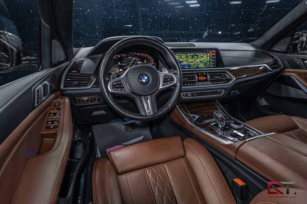 This particular example is dressed in the stylish "Carbon Black Metallic" paint and it is hotly combined with lavish 22" V-spoke rims, as well as with blue-painted brake calipers and chrome details along the exterior. On the inside, the hot theme continues with comfortable seats upholstered in the exclusive "Coffee/Black" merino leather interior and in front of the driver you will find the delicious sports steering wheel that is also upholstered in leather. The decorative inserts dress the cabin stylishly and neatly with brown noble wood intakes, it is also combined with the high-quality surround sound system from Harman/Kardon, as well as with the large and opening sky lounge panoramic glass roof that permeates the German cabin.