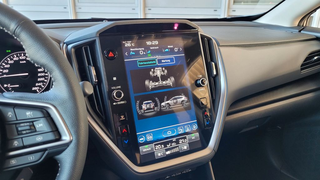 Airbag Fahrer-/Beifahrerseite, Akustischer Fußgängerschutz (Außensound), Anti-Submarining-Airbag Beifahrer, Aufprallschutz rundum, Auto-Hold-Funktion, Automatische Fahrlichtschaltung / Lichtsensor, AUX-IN-Anschluss, Außenspiegel Anthrazit-Grau, Außenspiegel elektr. verstell-, heiz- und anklappbar, Außenspiegel mit Totwinkel-Assistent, Außentemperaturanzeige, Blinkleuchten LED in Außenspiegel integriert, Bluetooth-Schnittstelle, Bremsassistent, Dachreling Anthrazit-Grau, Dachspoiler Wagenfarbe, Einparkhilfe hinten, Elektr. Bremskraftverteilung, Elektromotor 12 kW (Hybridantrieb), Fahrassistenz-System: aktiver Spurhalteassistent, Anfahr-Assistent (Stop&Go), Antriebsmomentkontrolle (Torque Vectoring), Ausweich-Assistent, Bergabfahrhilfe, Berganfahrhilfe, EyeSight, Fahrer-Erkennung (Driver Monitoring System) erweitert, Fernlichtassistent, Frontkollisionswarnung, Kollisionswarnsystem hinten, Querverkehrs-Assistent, Sicherheitssystem mit automatischem Notruf (ERA GLONASS / eCall), Spurwechselassistent, Straßenrand-Erkennung (Road Edge Detection), Totwinkel-Assistent, Verkehrszeichenerkennung, Fahrer-Informations-System (FIS) mit Farbdisplay, Fensterheber elektr., vorn mit Komfortschaltung und Einklemmschutz, Freisprechanlage Bluetooth, Gepäckraumabdeckung / Rollo, Geschwindigkeits-Begrenzeranlage, Geschwindigkeits-Regelanlage (Tempomat) mit Abstandsregelung, Getränkehalter, Handschuhfach beleuchtet, Heckleuchten LED, Heckscheibenwischer mit Intervallschaltung, Induktionsladeschale für Smartphone, Infotainment-Center 11,6"-Display (Touchscreen), Interieurleisten Schwarz, Innenspiegel mit Abblendautomatik, Intelligenter Geschwindigkeits-Begrenzer, Isofix-Kindersitz-System, Klimaautomatik 2-Zonen, Knieairbag Fahrerseite, Kopf-Airbag-System (Windowbag), Kühlerjalousie, Aktiv, Lendenwirbelstütze Sitz vorn links, Lenkrad (Leder) mit Multifunktion heizbar, Ziernaht farbig, Lenksäule (Lenkrad) höhen- und längsverstellbar, Leseleuchte, Leuchtweitenregelung automatisch, LM-Felgen, Mittelarmlehne hinten, Navigationssystem mit Georeferenzierung, erweiterter Umfang (what3words), Nebelscheinwerfer LED, NFC Funksystem (Near Field Communication), Notbrems-Warnblinkautomatik, Parkbremse elektronisch, Reifendruck-Kontrollsystem, Rückfahrkamera, Rücksitzlehne geteilt / klappbar, Schalt-/Wählhebelgriff Leder, Scheibenwaschanlage, Scheinwerfer LED mit dynamischem Kurvenlicht, Seitenairbag vorn, Seitenairbag vorn mitte (Center-Airbag), Service-System: Online Update, SI-Drive, Sicherheitsgurte höhenverstellbar, Sitz vorn links elektr. verstellbar (10-fach), Sitz vorn rechts elektr. verstellbar (8-fach), Sitzheizung vorn, Sonnenblenden mit Spiegel (beleuchtet), Sprachbediensystem Spracherkennung, Stabilitäts-Programm X-Mode mit 2 Modi, Start-Stop-Knopf, Start/Stop-Anlage, Steckdose (12V-Anschluß) in der Mittelkonsole, Tagfahrlicht LED, USB-Anschlüsse (2) hinten, Verglasung getönt, Verglasung hinten abgedunkelt, Zeituhr (digital)