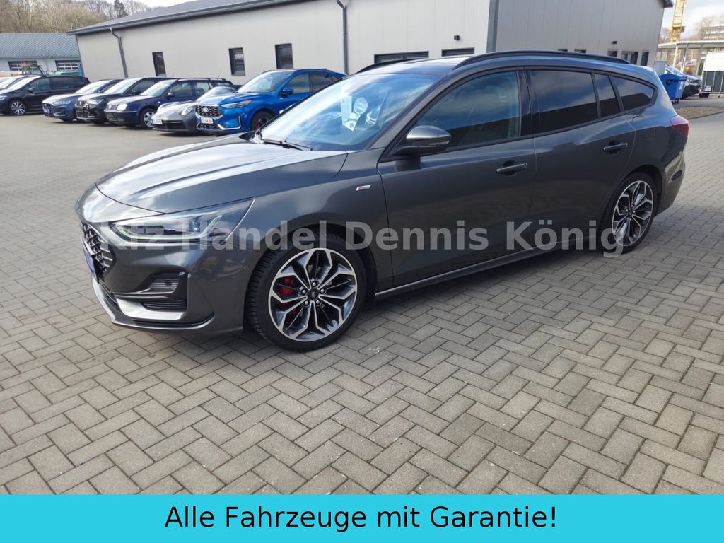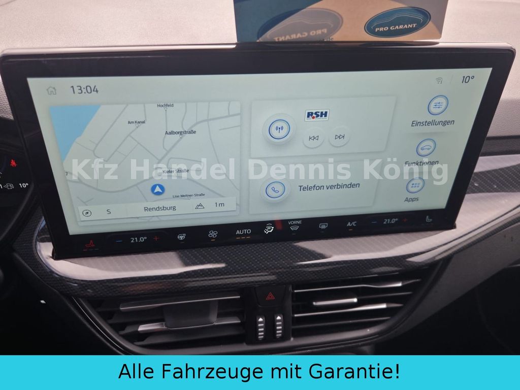 Stoffpolsterung in AnthrazitST-Line XAußenspiegel elektr. einstell-/ beheiz-/ anklappbarLicht- und RegensensorLED-Scheinwerfer m. statischem AbbiegelichtLED-RückleuchtenDachhimmel schwarz2-Zonen KlimaautomatikLM 17"Digitale Instrumententafel 12"Ambientebeleuchtung vorneSeiten- und Heckscheibe dunkel getöntInduktive LadestationRückfahrkameraKey Free-SystemPDC vorne und hintenFahrspurhalteassistentPre-Collision-AssistFord Sync 4 incl. Navigationssystem 13"Amazon Alexa Built-InDAB/DAB+Android Auto und Apple CarPlayFordPass Connect inkl. Live TrafficFahrerassistenz-PaketAdaptiver Tempomat (ACC)VerkehrsschilderkennungAusweichassistentMüdigkeitswarnerToter-Winkel-AssistentTeilautonome FahrassistenzFord Intelligent Drive AssistFahrspurpilot mit StauassistentFernlichtassistentWinter-PaketFrontscheibe beheizbarLenkrad beheizbarVordersitze beheizbarEasy-Parking-PaketAktiver Park-AssistentTürkantenschutzStyling-Paket ST-LineBremssättel rot lackiertDachspoiler großPedalerie in AluminiumEinstiegszierleisten ST-LineB&O Sound-SystemLED-Matrix-ScheinwerferHeckklappe elektrisch und sensorgesteuertPanorama-SchiebedachAHK-Vorbereitungs-SetFord Ergonomie-SitzLM 5x3-Speichen-Y-Design 18"