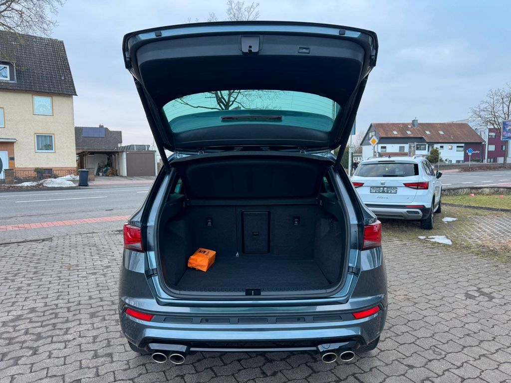 3. Bremsleuchte, 8 Lautsprecher, Ablagefach unterhalb Armaturentafel, Ablagetasche an Vordersitzlehnen, Airbag Beifahrerseite abschaltbar, Airbag Fahrer-/Beifahrerseite, Ambiente-Beleuchtung LED, Antriebs-Schlupfregelung (ASR), Audio-Navigationssystem Plus, Außenspiegel elektr. verstell-, heiz- und anklappbar mit Spiegelabsenkung und Welcome Light, Blinkleuchten LED in Außenspiegel integriert, Bluetooth Audio-Streaming, Bluetooth-Schnittstelle mit Freisprecheinrichtung integriert, Bordcomputer, Brillenfach, Dachhimmel schwarz, Dachreling schwarz, Doppelendrohr Auspuffanlage, links/rechts, Doppeltonhorn, Einstiegsleisten (Aluminium) vorn, beleuchtet, Elektron. Differentialsperre (XDS), Fahrassistenz-System: Adaptive Fahrwerksregelung (DCC), Fahrassistenz-System: Fahrprofilauswahl (SEAT Drive Profile), Fahrassistenz-System: Parklenkassistent mit Einparkhilfe vorn und hinten inkl. Rückfahrkamera, Fensterheber elektrisch vorn + hinten mit Komfortschaltung, Fensterzierleisten schwarz, Full Link (MirrorLink, Apple CarPlay und Android Auto), Fußraumbeleuchtung LED, Gepäckraumabdeckung / Rollo, Getränkehalter vorn, Handschuhfach mit LED-Beleuchtung, Heckleuchten LED, Heckspoiler Wagenfarbe (Dachspoiler), Induktionsladeschale für Smartphone, Innenausstattung: Chrom-Applikationen, Innenraumbeleuchtung LED, Isofix-Aufnahmen für Kindersitz an Rücksitz, Kamerasystem Umgebungsansicht (Top View, 360°), Karosserie: 5-türig, Klimaanlage Climatronic 2-Zonen, Knieairbag Fahrerseite, Kombiinstrument digital (virtual cockpit), Kopf-Airbag-System, Kopfstützen hinten (3-fach), Kopfstützen vorn, Kühlergrill schwarz, Lendenwirbelstütze Sitz vorn links, verstellbar, Lendenwirbelstütze Sitz vorn rechts, verstellbar, Leseleuchten hinten LED, Leseleuchten vorn LED, Licht- und Sicht-Paket, LM-Felgen, Mittelarmlehne hinten, Mittelkonsole vorn mit Mittelarmlehne, Becherhalter, Ablagebox und Luftausströmer hinten, Motor 2,0 Ltr. - 221 kW 16V TSI, Otto-Partikelfilter (OPF), Parkbremse elektrisch, Pedale Aluminium-Design, Radlaufabdeckung vorn und hinten lackiert, Radstand 2631 mm, Rücksitzlehne geteilt/klappbar (1/3-2/3), Rücksitzlehnen umklappbar mit Fernentriegelung im Kofferraum, Schadstoffarm nach Abgasnorm Euro 6d-TEMP, Schaltpunktanzeige, Schriftzug auf der Heckklappe, Seitenairbag, Seitenscheiben hinten und Heckscheibe abgedunkelt, Sitz vorn links höhenverstellbar, Sitz vorn rechts höhenverstellbar, Sitzbezug / Polsterung: Leder / Alcantara, Sonnenblende links mit Spiegel (beleuchtet), Sonnenblende rechts mit Spiegel (beleuchtet), Sport-Komfortsitze vorn, Start/Stop-Anlage, Stau-/Ablagefach unter Sitz vorn links, Steckdose (12V-Anschluß) vorn, Stoßfänger hinten Cupra-Design mit Diffusor, Stoßfänger vorn Cupra-Design, Türablagefach vorn, Verzurrösen Koffer-/Laderaum, Warnanlage für Sicherheitsgurt-System, Wärmeschutzverglasung