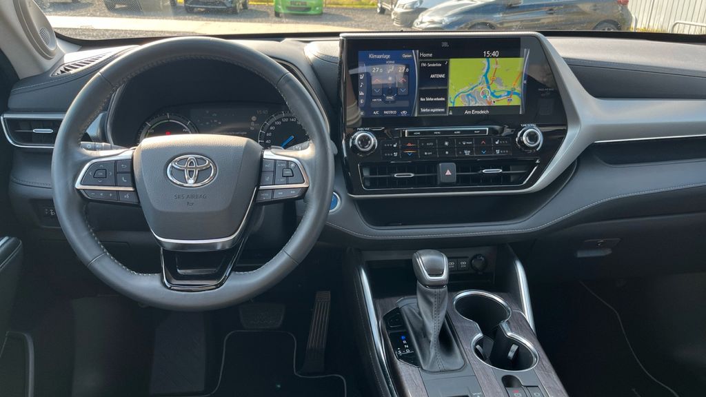 2.Sitzreihe mit Einzelsitzen, 2.Sitzreihe mit Sitzbank geteilt/klappbar, 3. Bremsleuchte, 3.Sitzreihe mit Sitzbank, 3.Sitzreihe mit Sitzbank geteilt/klappbar, A-Säulen schwarz glänzend (außen), Ablagetasche an Vordersitzlehnen, Adaptive Geschwindigkeits-Regelanlage mit Stop&Go-Funktion, Airbag Fahrer-/Beifahrerseite, Aktive Kopfstützen vorn, Ambiente-Beleuchtung vorn (LED), Anhänger-Stabilisierungs-Programm (TSC), Audiobedienung am Lenkrad, Audiosystem: Multimedia Toyota Touch, Außenspiegel elektr. anklappbar, Außenspiegel elektr. verstell- und heizbar, Außenspiegel mit Einparkfunktion/Rückwärtsparkhilfe, Blinkleuchte in Außenspiegel integriert, Bodenleuchte im Außenspiegel, Bremsassistent, Dachreling (verchromt), Dachspoiler, Einparkhilfe vorn und hinten, Einstiegsleisten (Aluminium), Elektromotor VA 134 kW / HA 40 kW (Hybridantrieb), Fahrassistenz-System: Berganfahrkontrolle (HAC), Fahrassistenz-System: Querverkehrs-Assistent Heck (Rear Cross Traffic Alert, RCTA), Fahrassistenz-System: Sicherheitssystem Toyota Connect mit automatischem Notruf (eCall), Fahrassistenz-System: Totwinkel-Assistent (BLIS), Fensterheber elektrisch vorn + hinten, Freisprechanlage Bluetooth, Frontscheibe Akustikglas, Gepäckraumabdeckung / Rollo, Head-up-Display, Heckleuchten LED, Induktionsladeschale für Smartphone, Innenausstattung: Carbon-Dekor, Innenausstattung: Holzdekor-Set, Innenbeleuchtung LED, Innenraumfilter: Staub- und Pollenfilter mit Aktivkohlefilter, Innenspiegel, digital (Smart View Mirror), Isofix-Kindersitz-System, Kamerasystem 360 Grad, Karosserie: 5-türig, Klimaautomatik 3-Zonen, Knieairbag Fahrerseite, Kofferraumdeckel / Heckklappe elektr. betätigt sensorgesteuert, Kopf-Airbag-System, Kopfstützen hinten, Kühlergrill mit Chromrand, Kühlergrill schwarz lackiert, Ladekantenschutz (Edelstahl), Lenkrad heizbar, Lenksäule (Lenkrad) verstellbar, Leseleuchten im Fond, Licht-aus-Automatik (Auto Cut), LM-Felgen, Mittelarmlehne vorn, Mittelkonsole mit Ablagefach, Motor 2,5 Ltr. - 140 kW 16V Hybrid, Multi-Funktions-Display für Navigationssystem (12,3 Zoll), Navigationssystem (Touch & Go), Nebelscheinwerfer LED, Radstand 2850 mm, Reifendruck-Kontrollsystem, Reserverad als Notrad, Schadstoffarm nach Abgasnorm Euro 6d, Schalt-/Wählhebelgriff Leder, Scheibenwaschdüsen heizbar, Seitenairbag, Seitenscheiben vorn Akustikglas, Sitz vorn links elektr. verstellbar (6-fach), Sitz vorn rechts elektr. verstellbar (4-fach), Sitzbezug / Polsterung: Leder, Sitze vorn klimatisiert, Smartphone-Integration x-connect (Apple CarPlay und Android Auto), Sonnenblenden mit Spiegel (beleuchtet), Sonnenschutzrollo an Seitenscheiben hinten, Sound-System JBL Premium (inkl. Subwoofer), Start-Stop-Knopf, Steckdose (12V-Anschluß) in Mittelkonsole, Toyota Safety Sense, Türgriffe außen Wagenfarbe, Universal-Schnittstelle (USB-/ iPod-/ AUX-Anschluss), Verglasung hinten abgedunkelt, Wärmeschutzverglasung