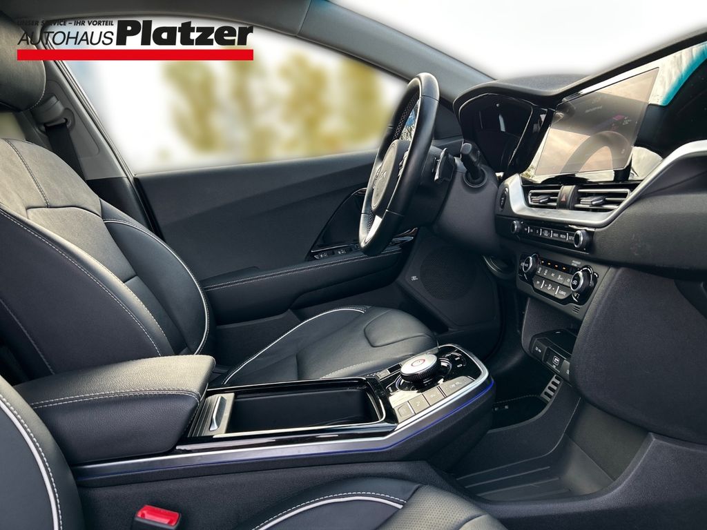 - Weiteres: BORDCOMPUTER, Reifendruck-Kontrollsystem, Mittelarmlehne vorn, Schalt-/Wählhebelgriff Leder, Rückfahrkamera, Lenksäule (Lenkrad) höhen-/längsverstellbar, Scheibenwischer mit Regensensor, Einparkhilfe hinten, Knieairbag Fahrerseite, Dachreling, Heckleuchten LED, Außenspiegel elektr. verstell- und heizbar, beide, Ambiente-Beleuchtung, Dachspoiler, Einparkhilfe vorn, Laderaumabdeckung, LM-Felgen, Audio-Navigationssystem KIA (10,25), Elektromotor 150 kW (cont. 29 kW), Sitzbelüftung vorn, Sitzbezug / Polsterung: Leder, Sitz vorn rechts elektr. verstellbar (8-fach), Airbag Fahrer-/Beifahrerseite, Anti-Blockier-System (ABS), Nebelscheinwerfer, Stoßfänger Wagenfarbe, Tagfahrlicht LED, Außenspiegel elektr. verstellbar, beide, Servolenkung, Wegfahrsperre, Rücksitzlehne geteilt/klappbar, Seitenairbag, USB-Anschluss + AUX-IN-Anschluss, Elektron. Stabilitäts-Programm (ESP / ESC), Kopf-Airbag-System vorn und hinten, Adaptive Geschwindigkeits-Regelanlage mit Stop&Go-Funktion, Metallic-Lackierung, aktiver Spurhalteassistent (LKAS, Lane Keep Assist System), Aktives Bremslicht (ESS), Antriebsart: Frontantrieb, Audiobedienung am Lenkrad, Außenspiegel elektr. anklappbar, Außenspiegel mit BLIS (Blind Spot Informations System), Beifahrerairbag abschaltbar, Berg-Anfahr-Assistent, Bi-LED-Scheinwerfer, Blinkleuchte in Außenspiegel integriert, Bremsassistent, DAB-Tuner (Radioempfang digital), Diebstahl-Warnanlage, Eco-Paket, Einschaltautomatik für Fahrlicht, Einstiegsleisten (Aluminium), Fensterheber elektrisch vorn und hinten, Fernlichtassistent, Freisprechanlage Bluetooth, Frontkollisionswarnung mit Fußgängererkennung, Frontscheibe Solar-Reflect, Gegenlenkunterstützung (Vehicle Stability Management - VSM), Getränkehalter hinten, Gurtstraffer mit Kraftbegrenzer, Heckscheibe heizbar, Heckscheibenwischer, Induktionsladeschale für Smartphone, Innenspiegel mit Abblendautomatik, Isofix-Aufnahmen für Kindersitz, Klimaautomatik, Ladevorrichtung On-Board-Lader (3-Phasen), Lederlenkrad, Leder-Paket Plus, LED-Paket, Lendenwirbelstützen elektr. verstellbar, Lenkrad heizbar, Mittelarmlehne hinten, Müdigkeitserkennungs-Sensor (Driver Attention Warning, DAW), Pedale Aluminium, Querverkehrs-Assistent, Schließ-/Startsystem Smart-Key, Seitenscheiben Solar-Reflect, Sitz vorn links elektr. verstellbar (8-fach), Sitzheizung hinten, Sitzheizung vorn, Sitzhöhenverstellung Fahrersitz, Smartphone Schnittstelle, Soundgenerator (innen), Sound-System JBL Premium, Spurwechselassistent, Stauassistent, Steckdose 230V, Subwoofer, Technik-Paket, Verglasung hinten abgedunkelt (Privacy Glass), Verkehrszeichenerkennung, Wärmeschutzverglasung, ZV mit Fernbedienung